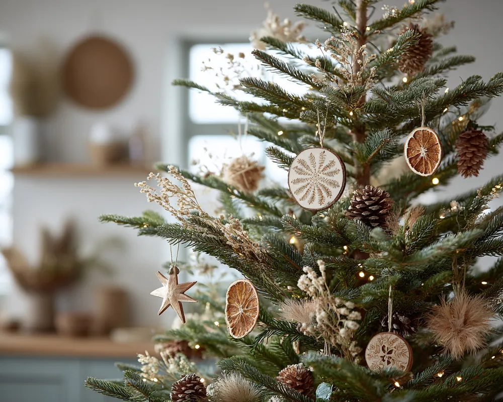 This holiday season, let's embrace the organic beauty of wood! 🌲 Forget plastic trees and go for a rustic Christmas tree that speaks to the soul. Think natural wood slices adorned with pinecones, dried orange slices, and simple twine.