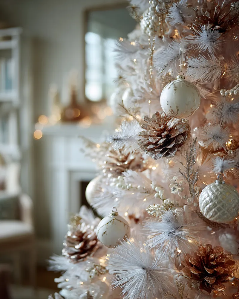 Opt for a white Christmas tree for a backdrop of pure elegance that transcends seasons. This choice provides a versatile canvas for any color palette, ensuring your decor remains timeless. I love layering delicate silver, pearly white, and subtle gold ornaments for a sophisticated shimmer. Incorporate elements like frosted pinecones, pearl garlands, and delicate fairy lights to enhance its ethereal glow. This creates a serene and airy Christmas scene that feels both classic and modern. Itโs about building layers of texture and subtle shine. ๐๐ฆข Save this for your dream holiday tree! โจ
