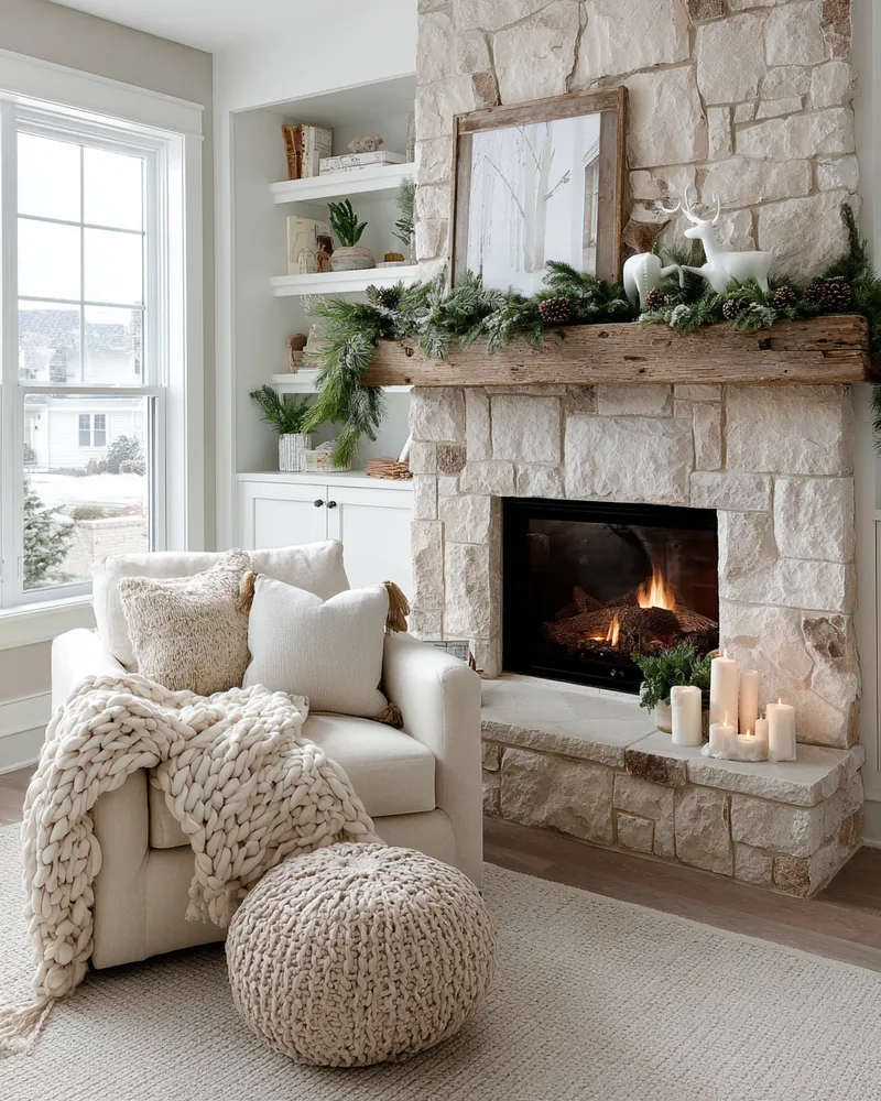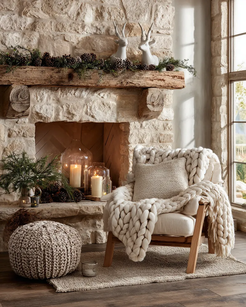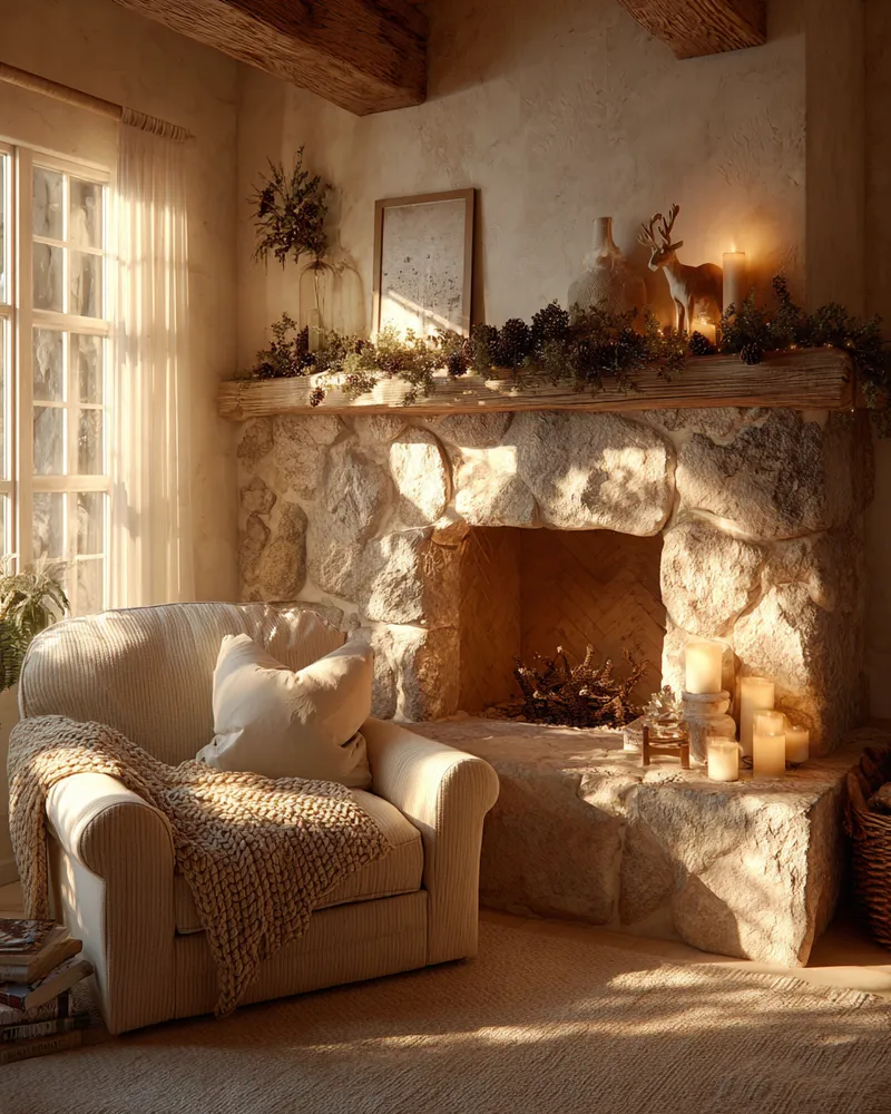 Warmth in Winter: Stone & Wood Accents for a Cozy Christmas Home 🪵