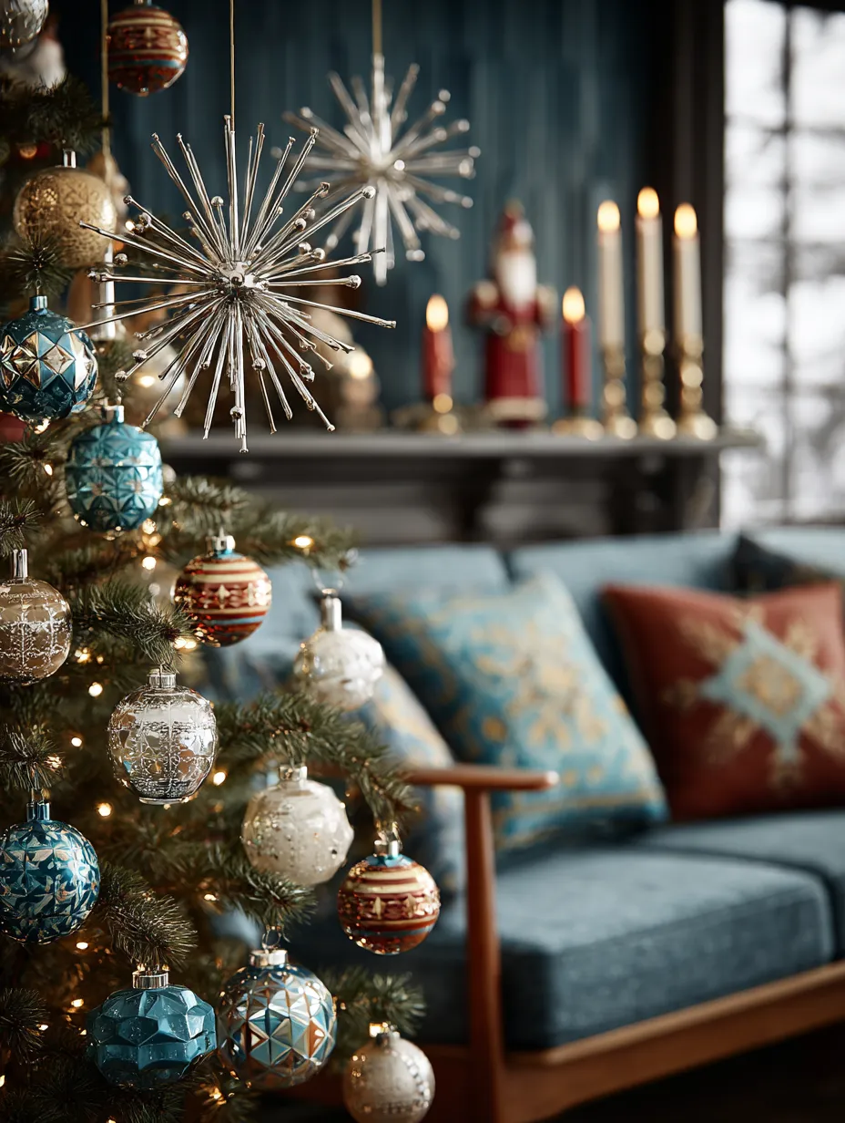 ๐ก Elevate your tree with Sputnik ornaments and geometric baubles.