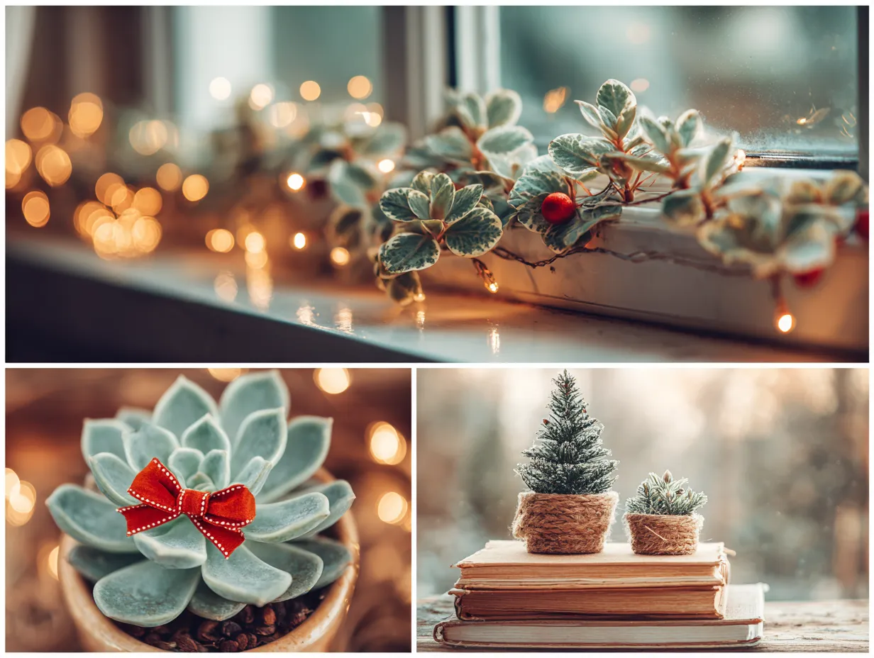 2. **Ornamented Succulents:** Tiny succulents make adorable, living tree toppers or stand-alone festive accents. Add a mini bow or glitter detail!