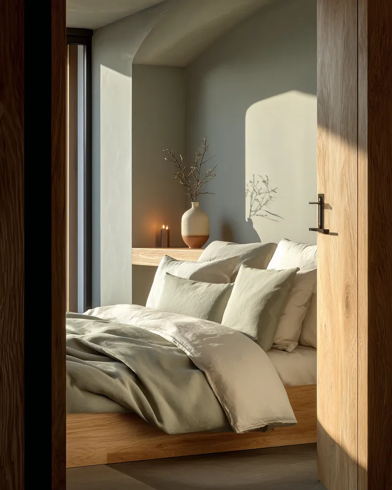 * Warm Lighting: Cluster small, unscented taper candles in minimalist holders.