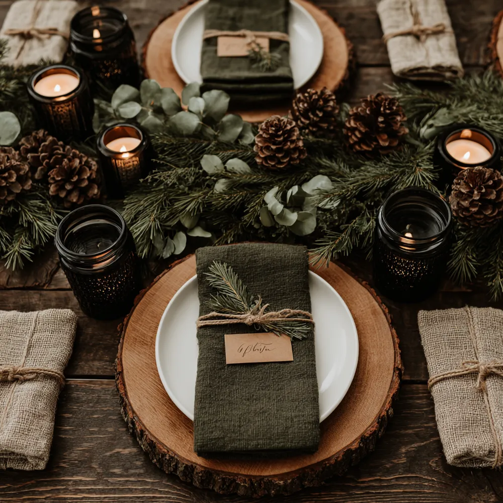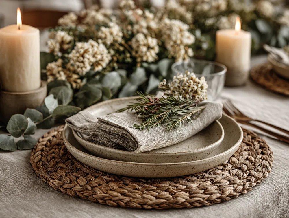 * Subtle Textures: Linen napkins add a touch of organic softness.
