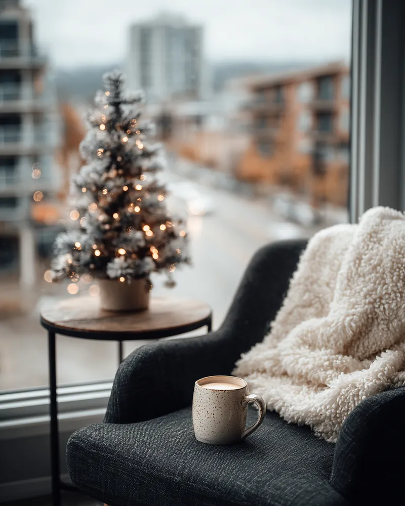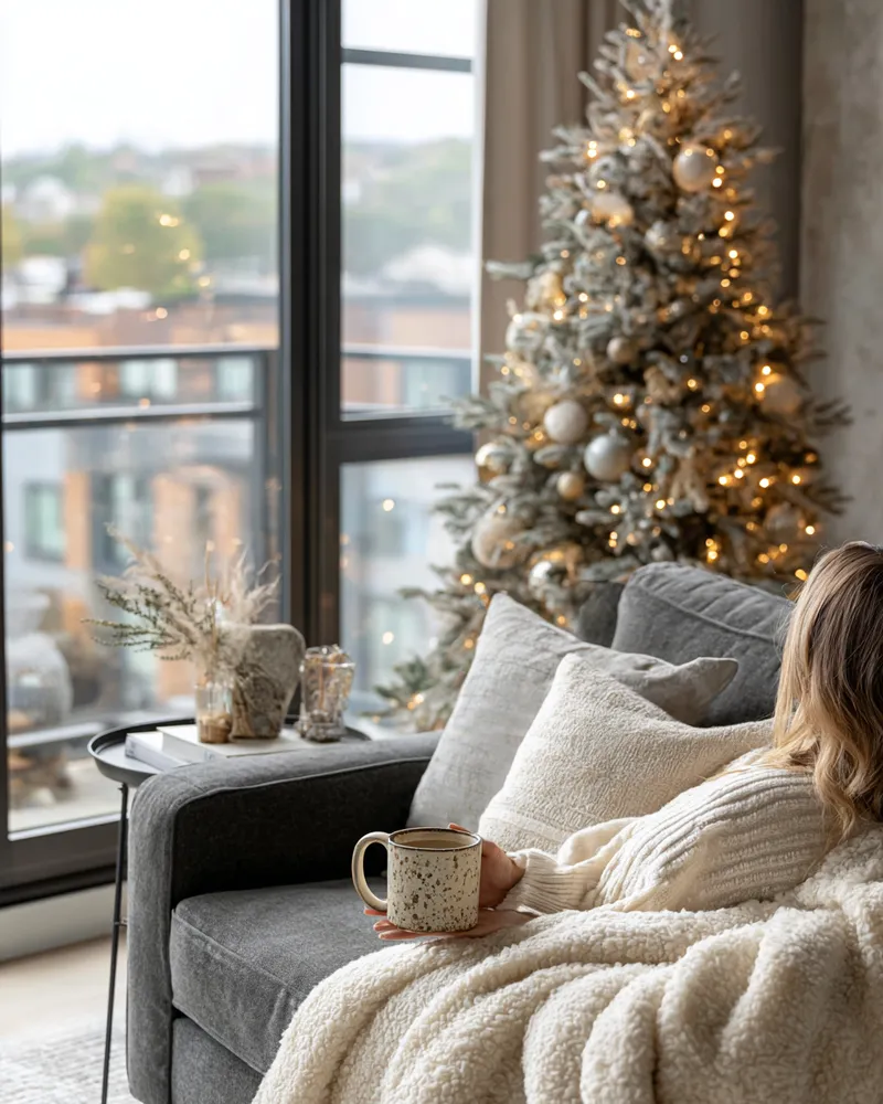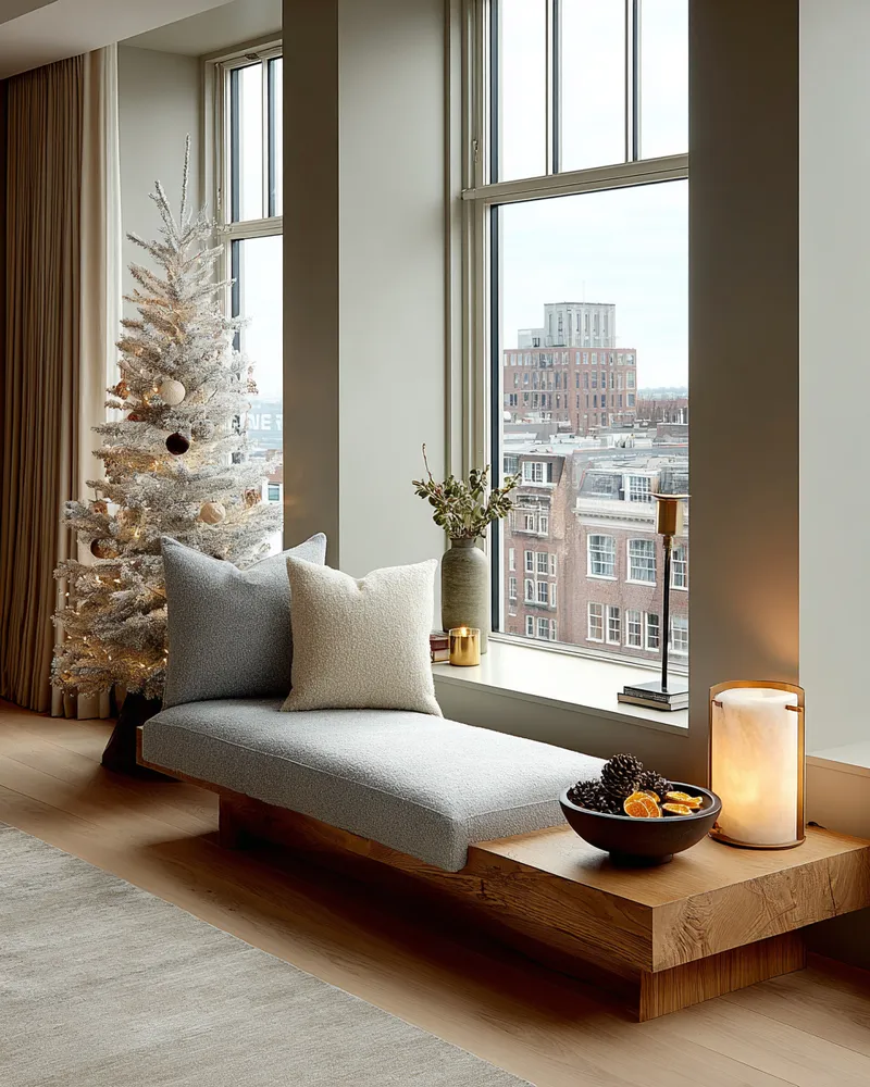 Warm LED fairy lights are essential for that inviting glow. A refined tree topper, like a simple star or a delicate bow, completes the look. It’s about sophistication in every square foot. ✨ Save this for your elegant holiday setup! #MinimalistChristmasIdeas#SmallSpaceChristmas#ApartmentChristmas#ElegantDecor#ChristmasTreeIdeas#UrbanDecor#ChicHoliday#HomeDecorIdeas#HolidayInspo#SophisticatedLiving