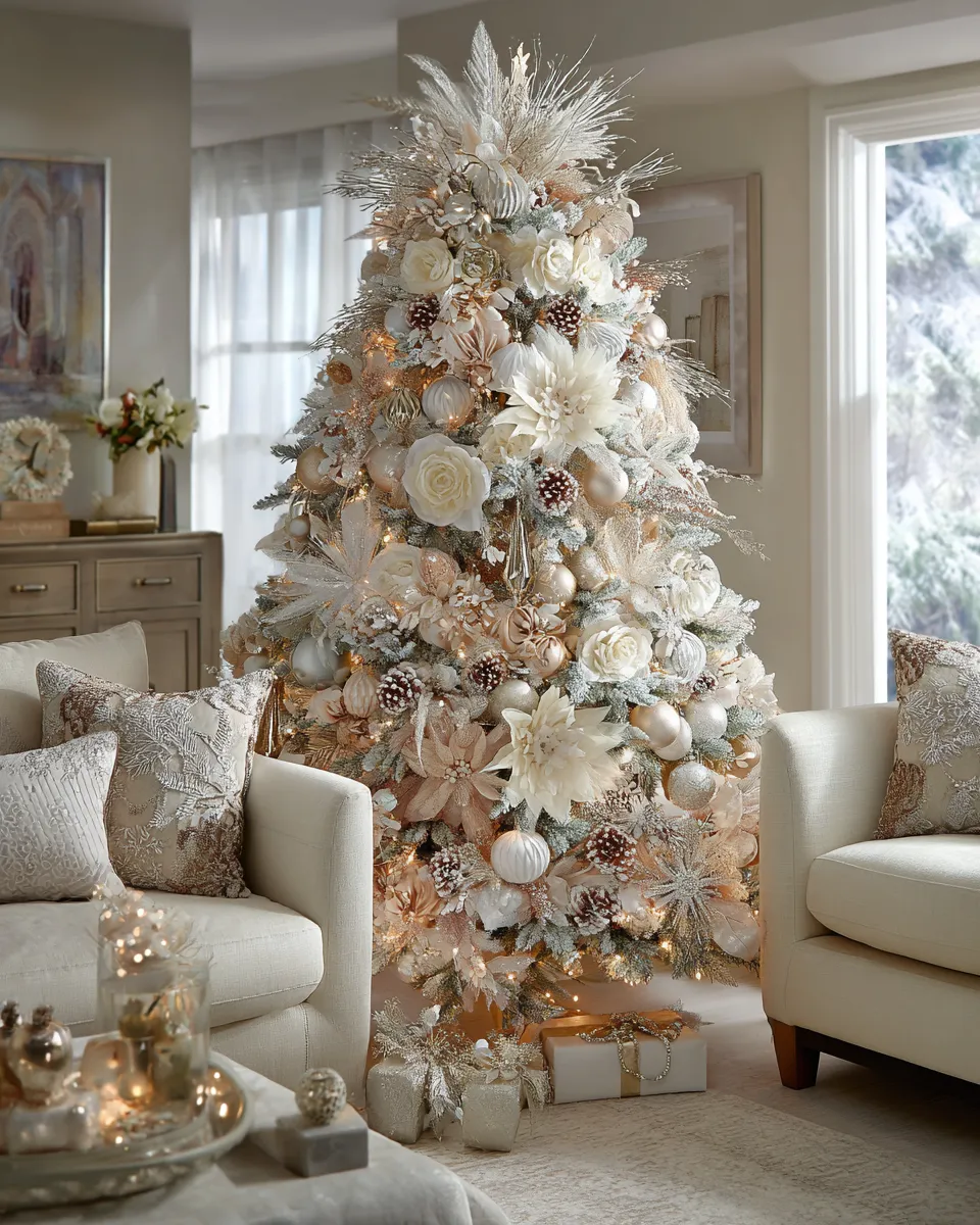 Opt for a white Christmas tree for a backdrop of pure elegance that transcends seasons. This choice provides a versatile canvas for any color palette, ensuring your decor remains timeless. I love layering delicate silver, pearly white, and subtle gold ornaments for a sophisticated shimmer. Incorporate elements like frosted pinecones, pearl garlands, and delicate fairy lights to enhance its ethereal glow. This creates a serene and airy Christmas scene that feels both classic and modern. It’s about building layers of texture and subtle shine. 🌟🦢 Save this for your dream holiday tree! ✨ #WhiteChristmasTreeIdeas#ChristmasTreeDecorIdeas#ElegantChristmas#HolidayInspo#TimelessChristmas#HomeDecorIdeas#ChristmasDecor#FestiveDecor#InteriorDesign#ScandiChristmas