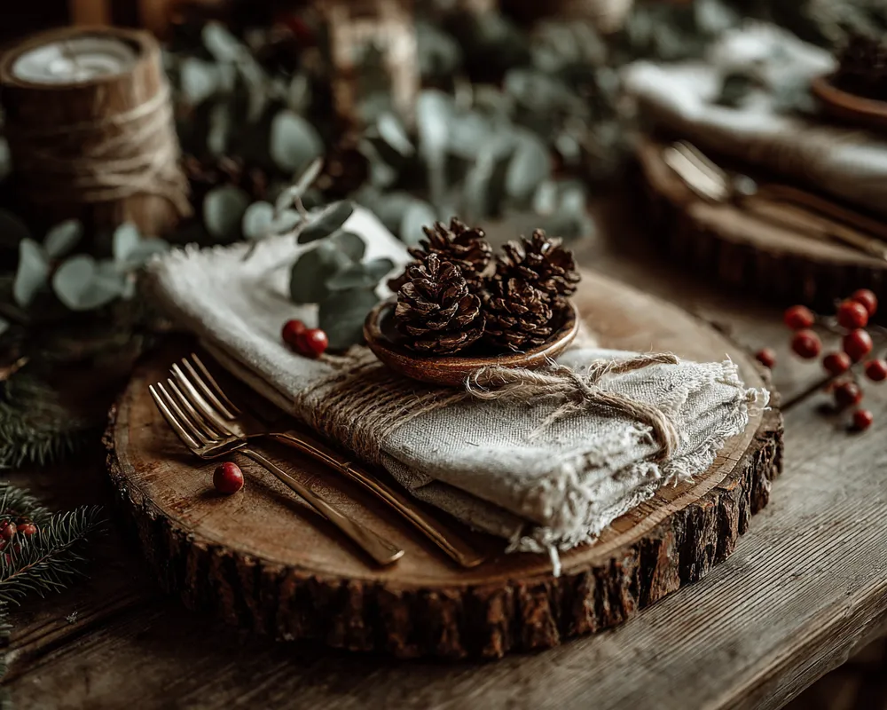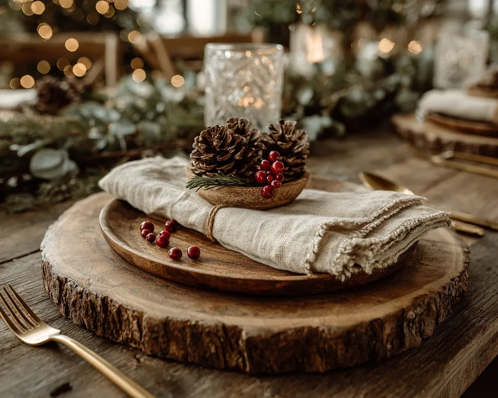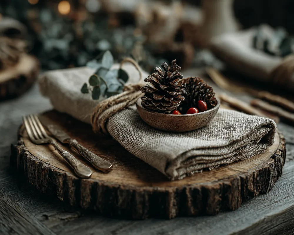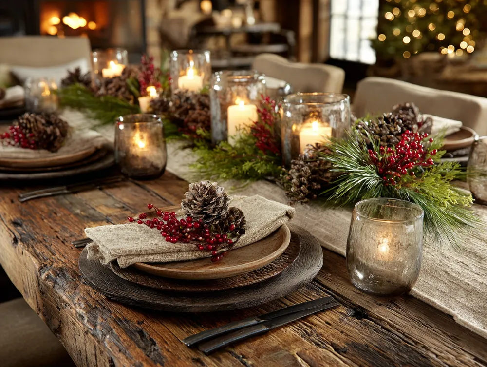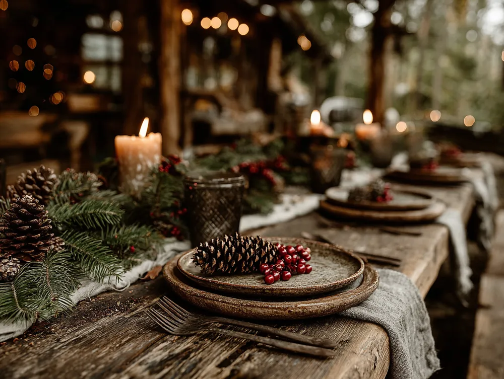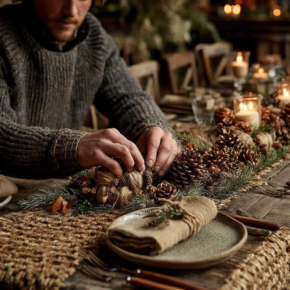 * **Foraged Greenery:** Tuck sprigs of fir, cedar, or holly around your plates or down the center.