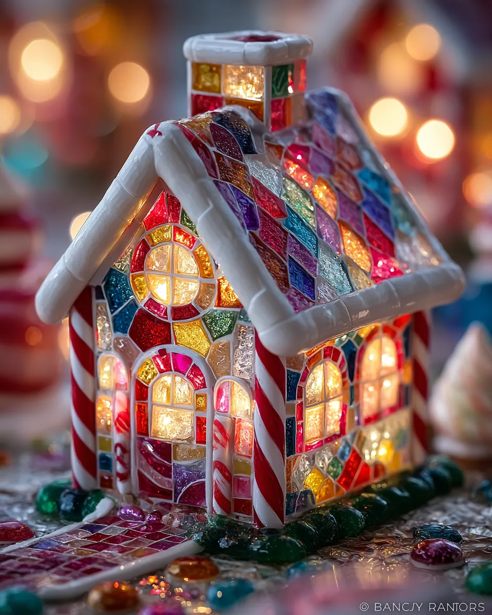 Think vibrant, colorful tiles forming candy canes, frosted roofs, and candy windows. These aren't just decorations; they're edible-looking art pieces!