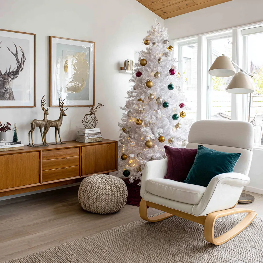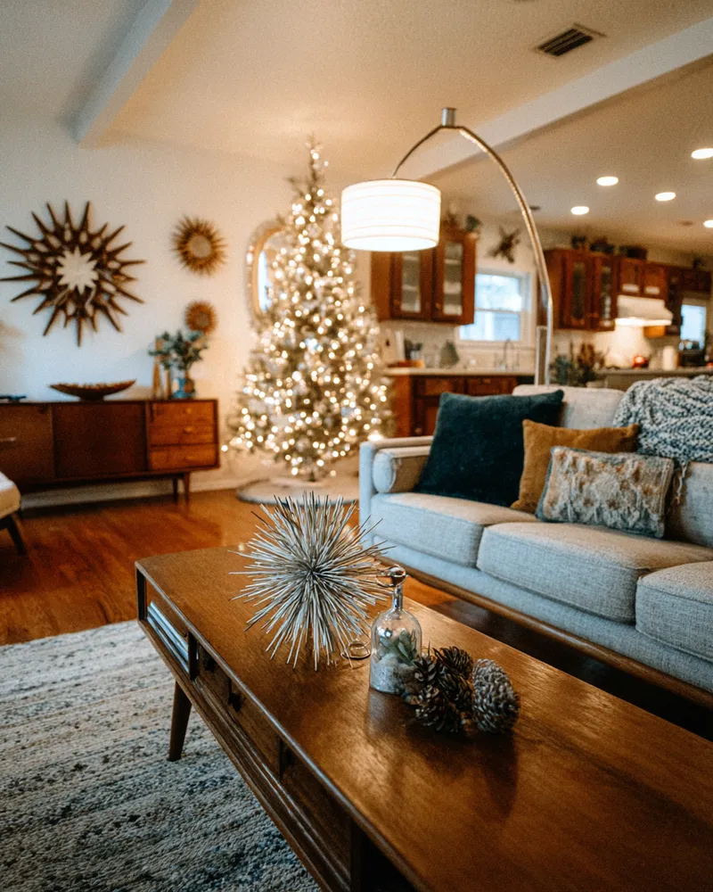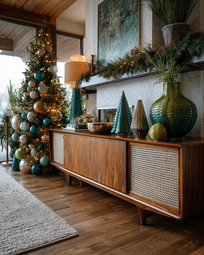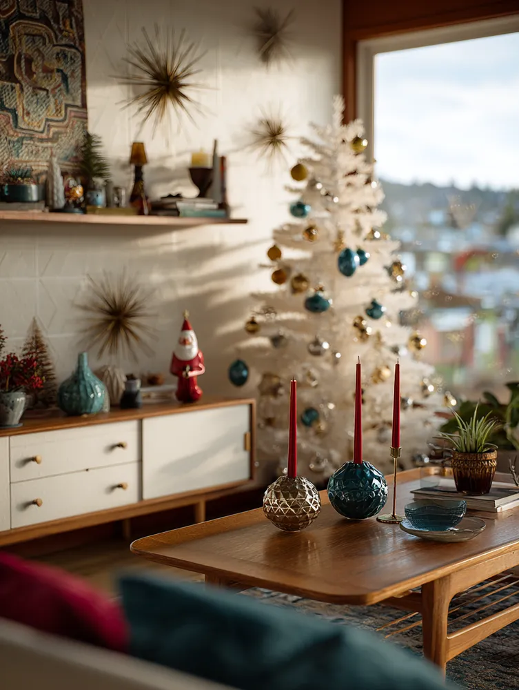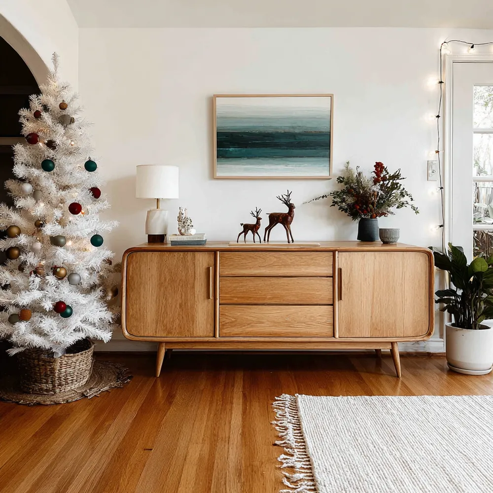 Want to infuse your home with mid-century holiday charm beyond the tree? Creating simple, stylish vignettes is key! ✨ Think about a classic credenza or console table. Style it with a touch of festive greenery, perhaps a small artificial poinsettia in a tapered ceramic planter, and a couple of iconic mid-century pieces. 🎄 Imagine a sculptural vase, a vintage-inspired tabletop clock, or a perfectly placed sculptural reindeer. A scattering of brushed brass or deep red baubles can add a festive pop without overwhelming the space. The goal is effortless elegance and a hint of retro holiday nostalgia. 🤍 Save this for your holiday styling inspiration! 🗓️ #MidCenturyHoliday#HolidayVignetteIdeas#ChristmasCornerInspo#FestiveDecorIdeas#RetroHolidayDecor#InteriorStylingTips#MidCenturyHome#DesignerHolidays#ElegantHomeDecor#SeasonalStyle