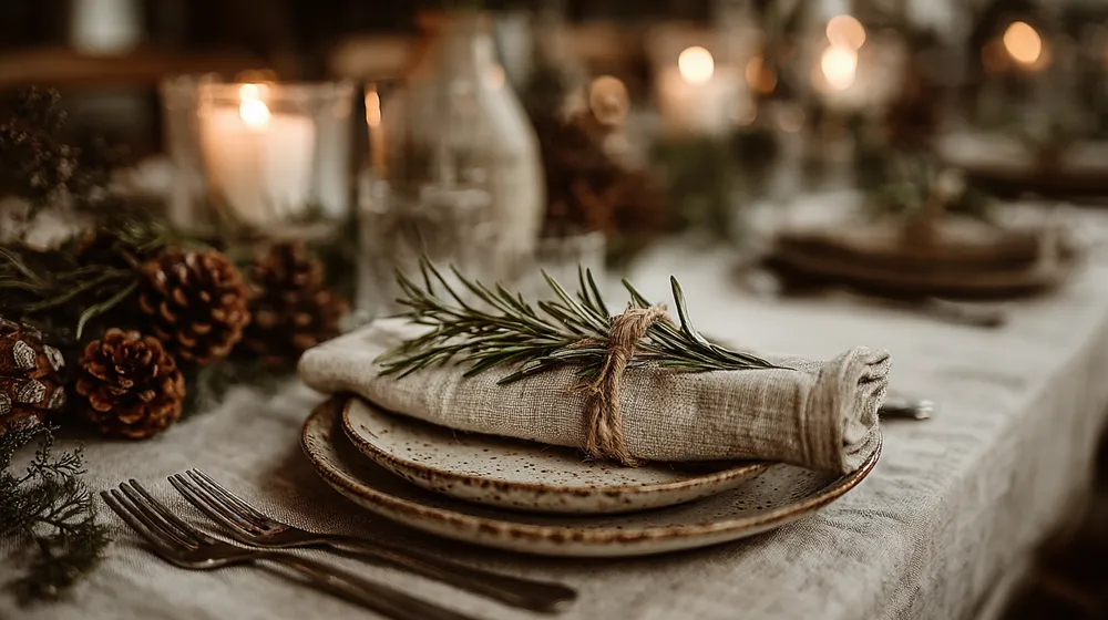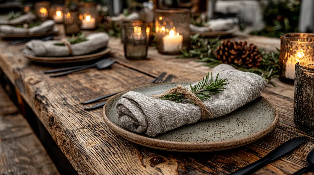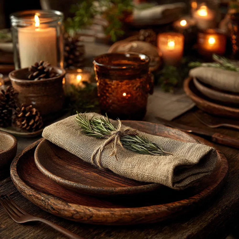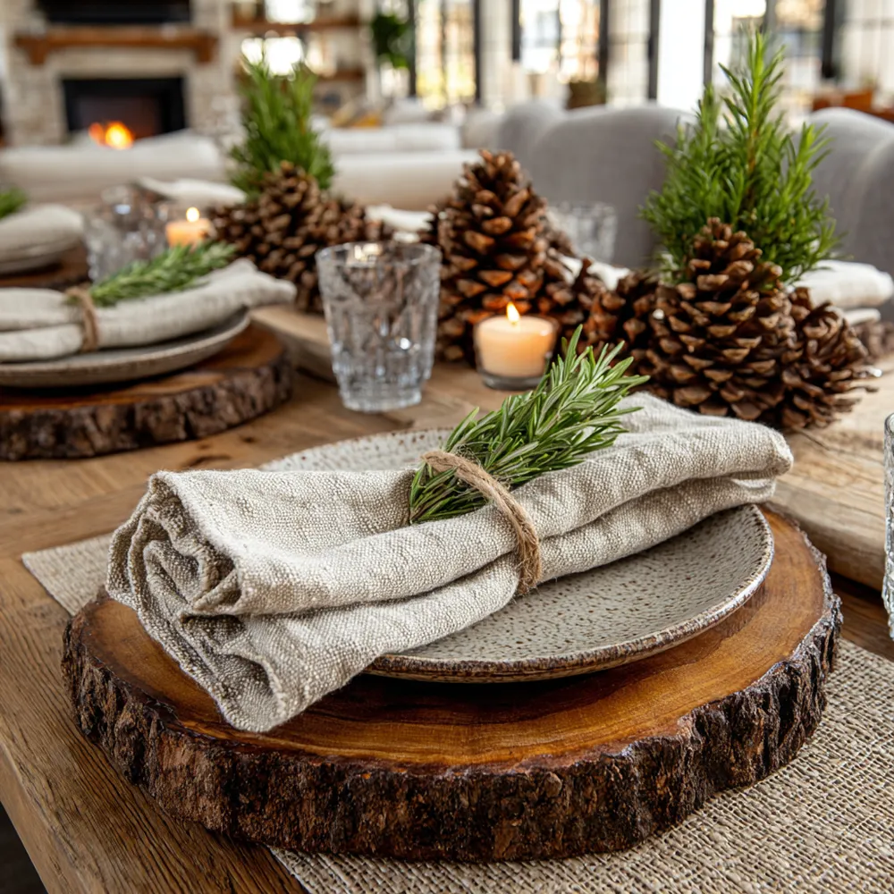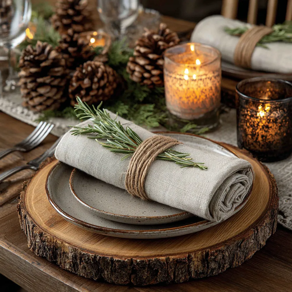 1. **Natural Materials:** Opt for wooden chargers, linen napkins, and ceramic or stoneware dishes. 🌿