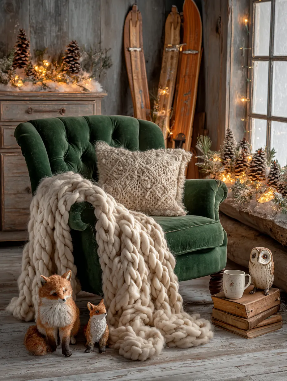 Dreaming of a Christmas corner that feels both festive and uniquely yours? My latest creation blends rustic woodland charm with my signature eclectic layering! 🦌 This nook features vintage wooden skis, a curated collection of forest animal figurines, and soft, ambient lighting from fairy lights tangled in faux pine. The key is mixing textures: a chunky knit throw over a vintage velvet armchair, topped with handmade ceramic mugs. It's about creating a story! This inviting space is perfect for sipping mulled wine and unwrapping gifts. Save this for your ultimate cozy holiday hideaway! 🌲 #ChristmasIdeas#HolidayDecorIdeas#EclecticDecorIdeas#CozyNookIdeas#WoodlandChristmasIdeas#VintageChristmas#HomeDecorInspo#HolidayStyle#ChristmasInspo#FestiveDecor