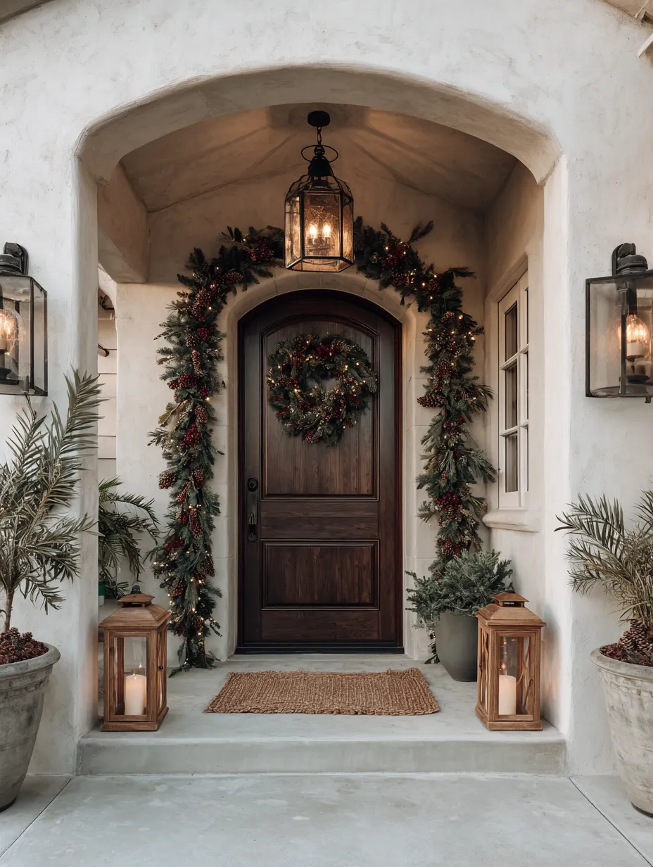This creates a sophisticated yet warm greeting that captures the essence of the season. Save this post for your entryway inspiration! #EntrywayIdeas#ChristmasDecorIdeas#HolidayEntrywayIdeas#FrontDoorDecorIdeas#OutdoorDecorIdeas#GardenAndGrace#FestiveWelcome#NatureInspiredDecor#HomeEntrance#DesignInspo