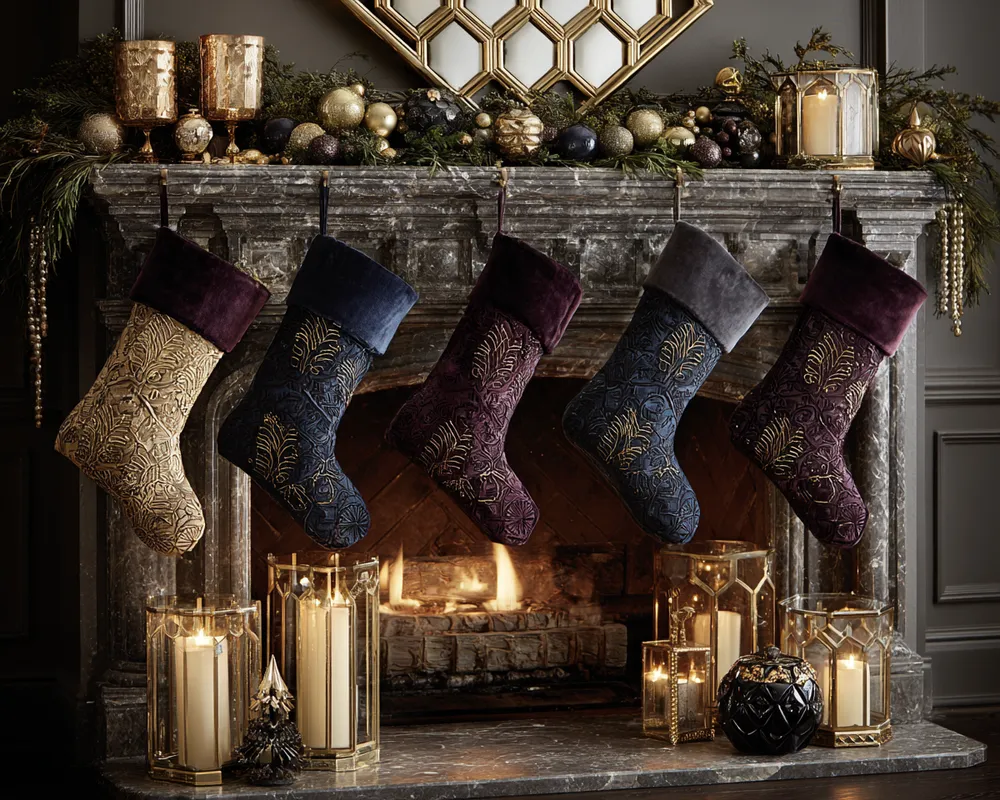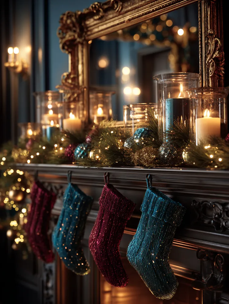 The Christmas mantel is the heart of holiday coziness! โค๏ธ I love creating layers with rich textiles and festive elements to bring warmth and sparkle. This year, I'm focusing on a 'winter forest' theme, weaving in natural textures like faux pine garlands, birch branches, and accents of deep forest green. Drapery with subtle metallic threads and plush velvet stockings add a luxurious touch. Don't forget the sparkle! โจ Consider mixing matte and shimmering elements for depth. This creates an inviting focal point for your festive gatherings.