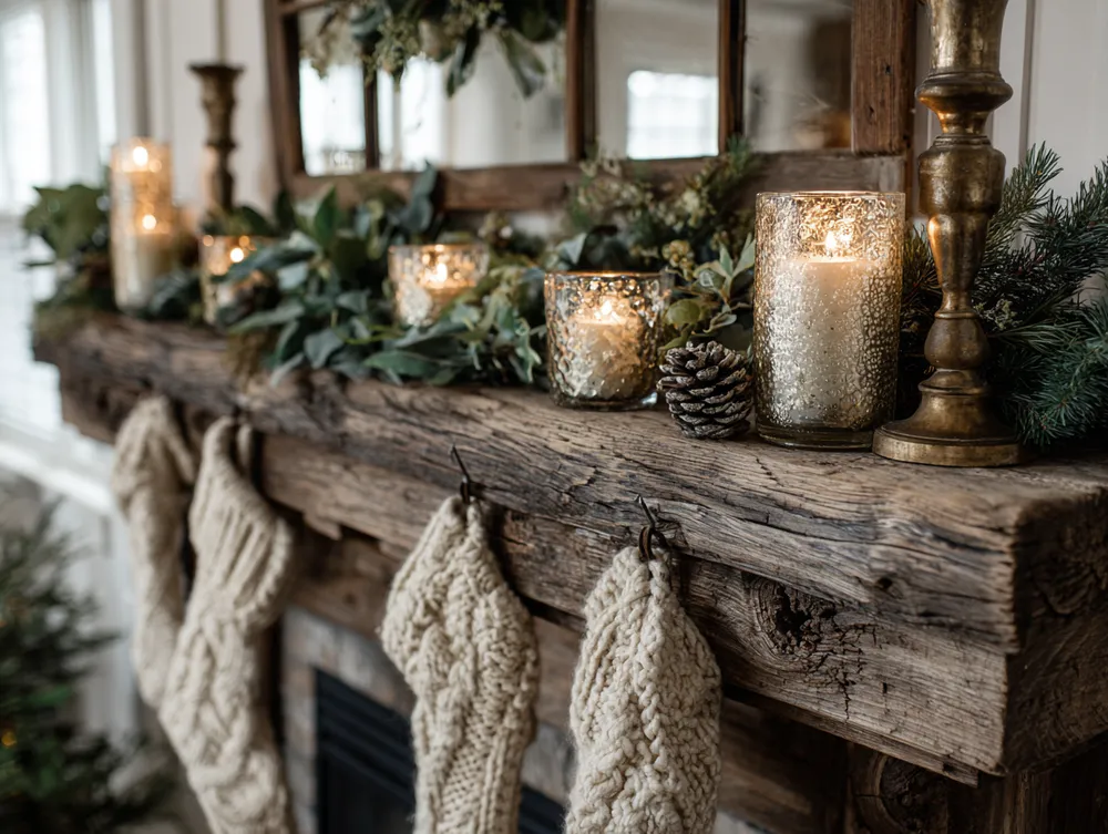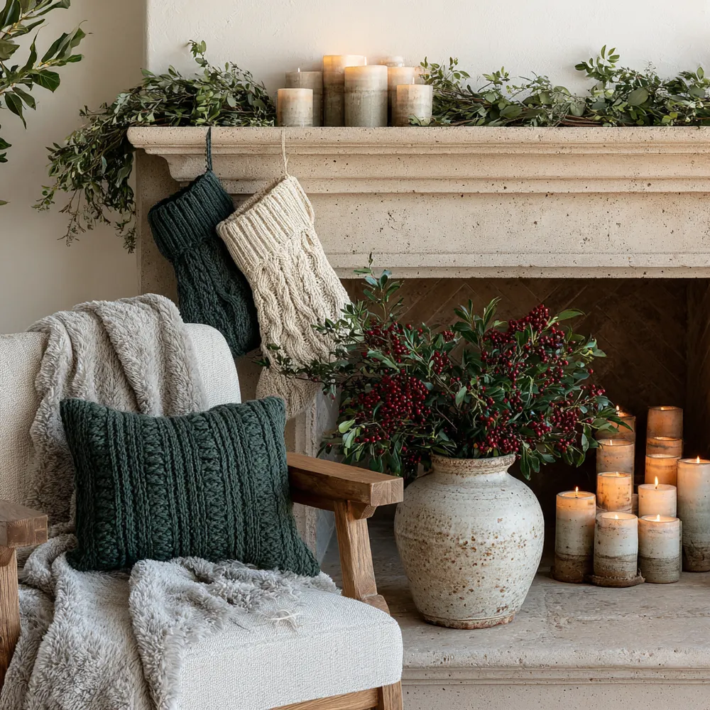 Layered Textures for a Festive & Cozy Christmas Mantel ๐ชต๐งฃ