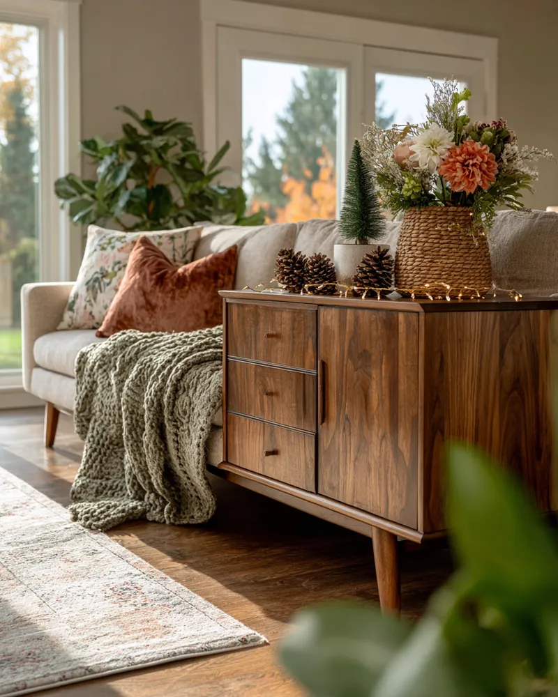 🛋️ Midcentury Meets Mistletoe: Creating a Festive & Chic Living Space 🎄
