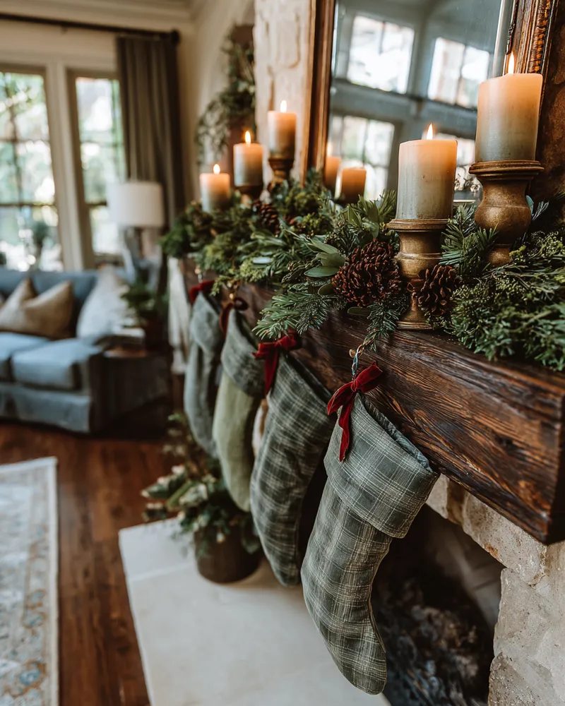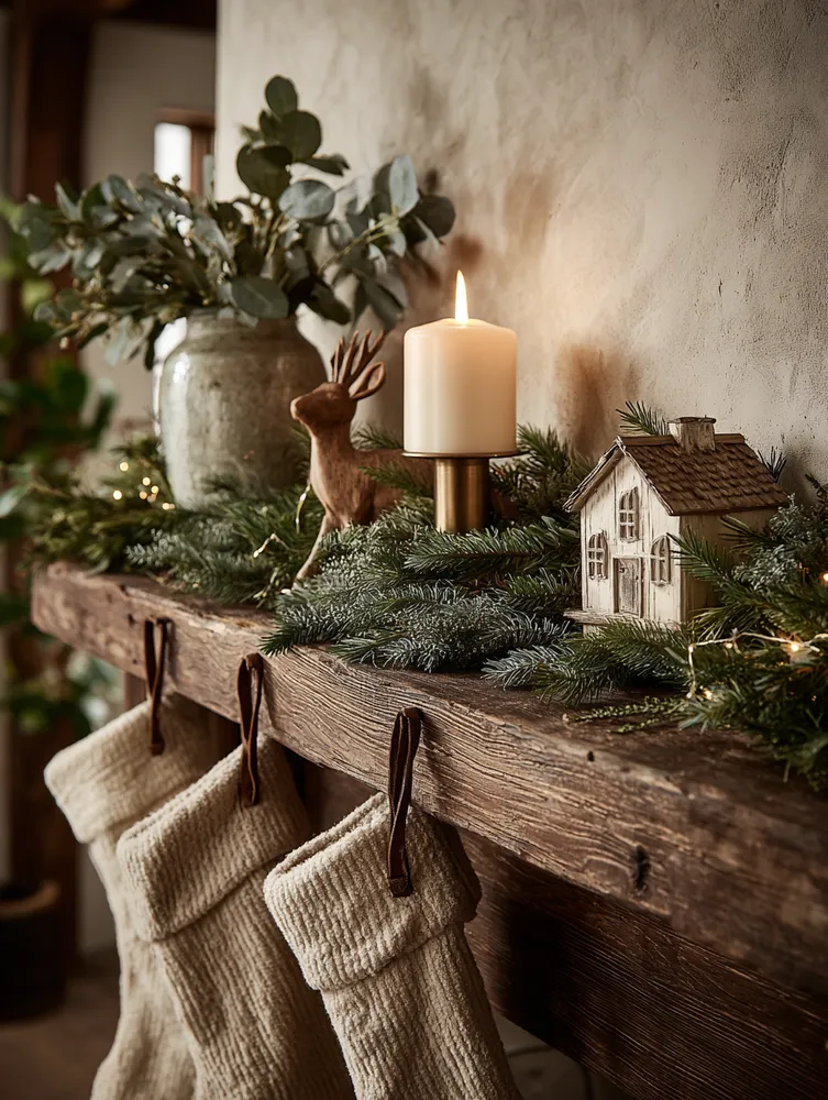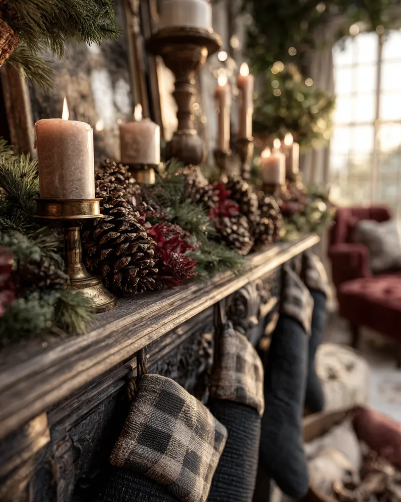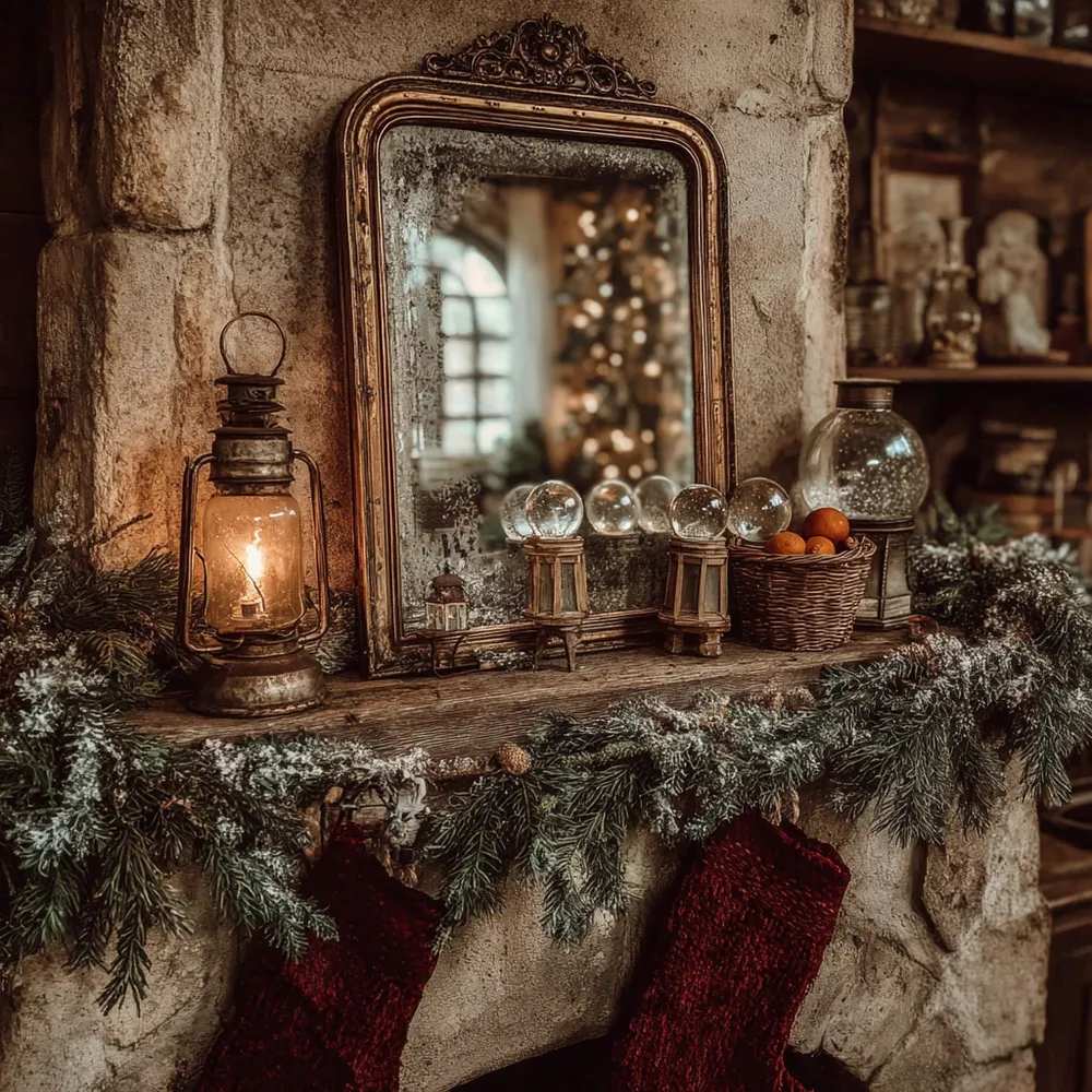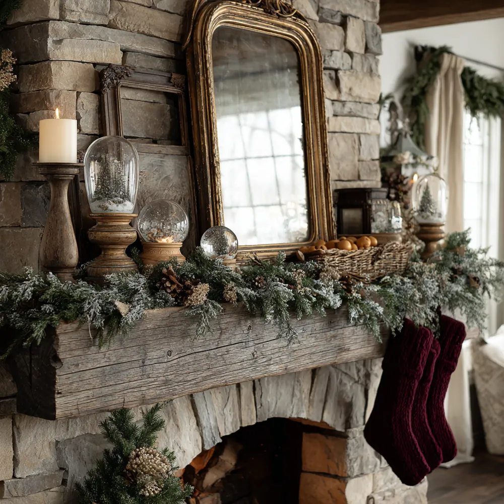 Layer in 2–3 small collectibles, seasonal items, or personal treasures (like shells in summer, pumpkins in autumn, or ornaments in winter) to refresh your mantel's look while maintaining a consistent overall style.
