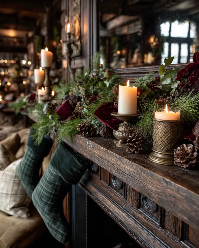 Create harmony with balanced groupings—use pairs of objects or mirror elements on both sides of the mantel, and play occasionally with intentional asymmetry for a more modern, curated vibe.