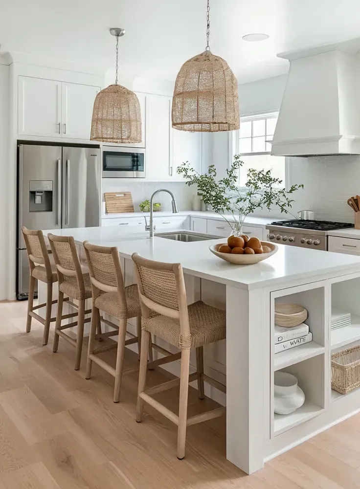 When we talk Japandi, natural wood is king. But let's explore the complementary power of concrete and stone for that ultimate grounded feel! Imagine a concrete countertop – its subtle variations and matte finish offer a beautiful contrast to warm wood cabinetry. Or a natural stone backsplash, like honed travertine or slate, adding depth and a touch of earthy sophistication. These materials aren't just surfaces; they're tactile stories that whisper of craftsmanship and enduring beauty. Elevate your minimalist kitchen with these powerful material pairings. What materials speak to you?