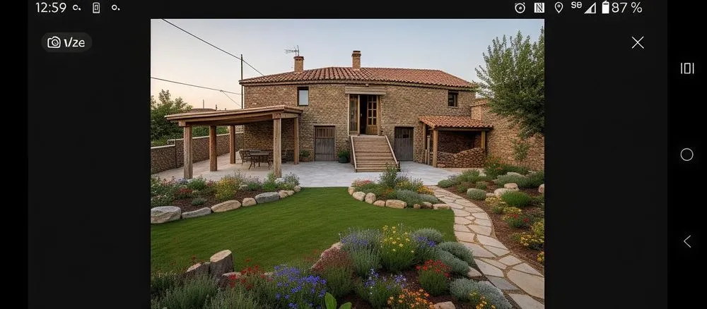 a computer screen shows a beautiful house with a driveway
