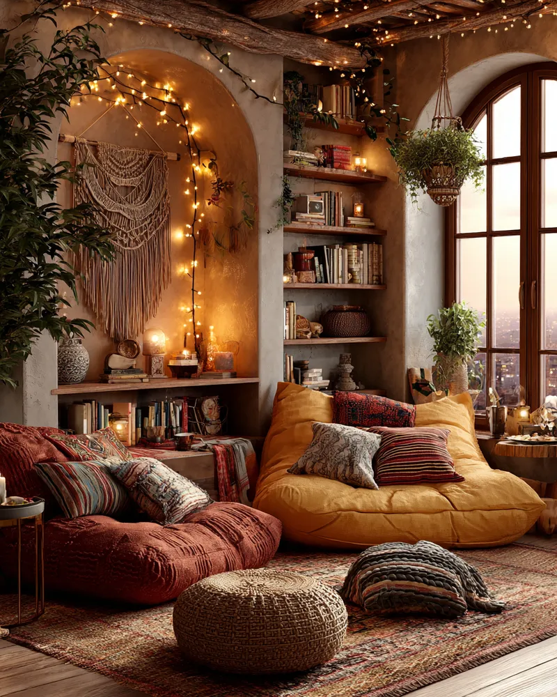 Layered Boho Bliss: Crafting a Cozy & Eclectic Reading Nook 📚