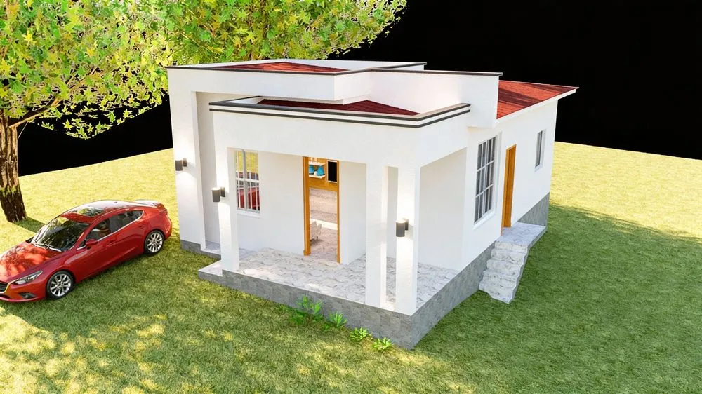 a small house with a car parked in front of it