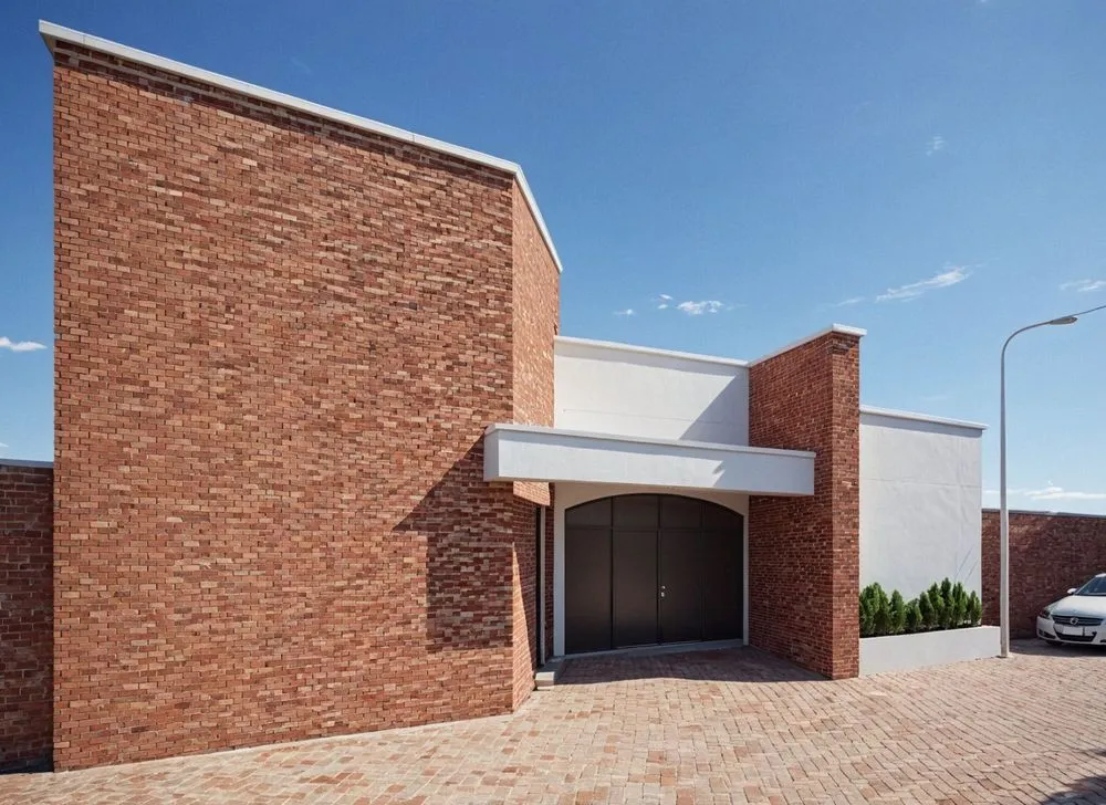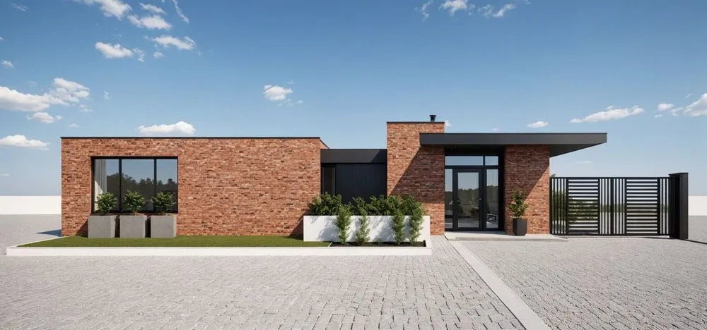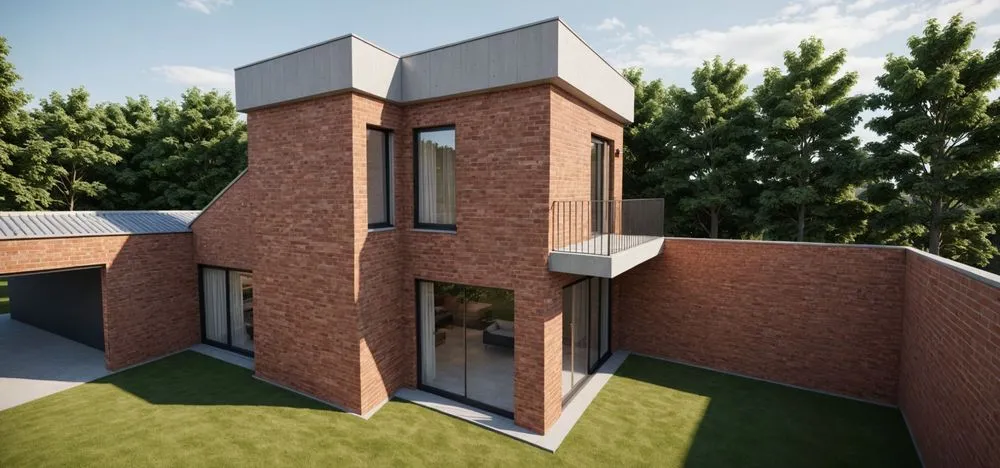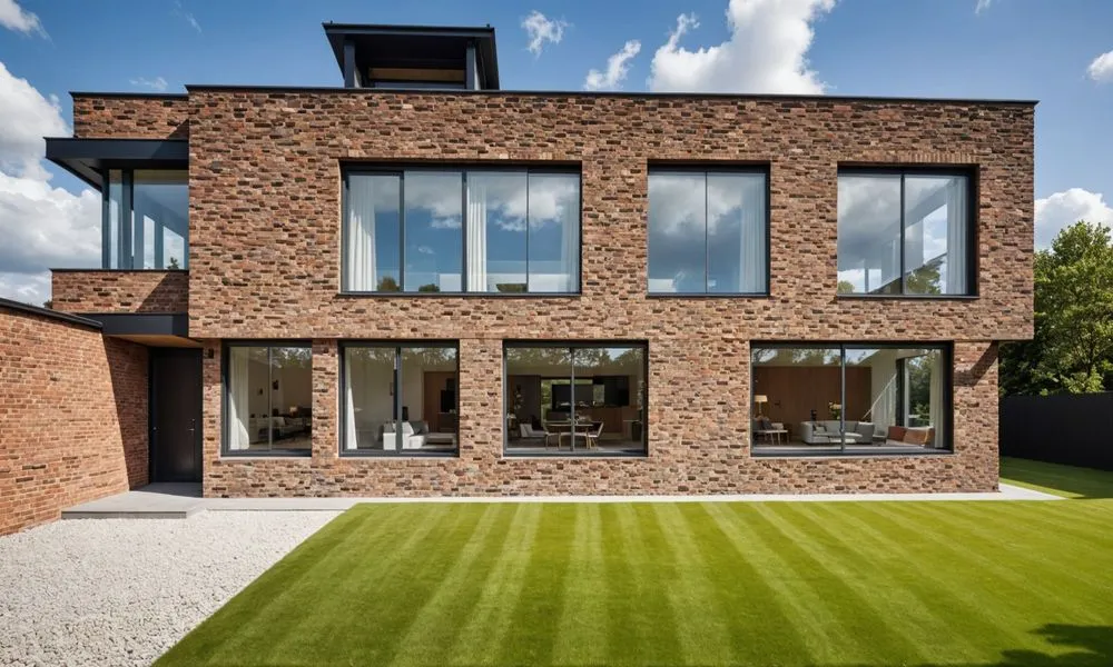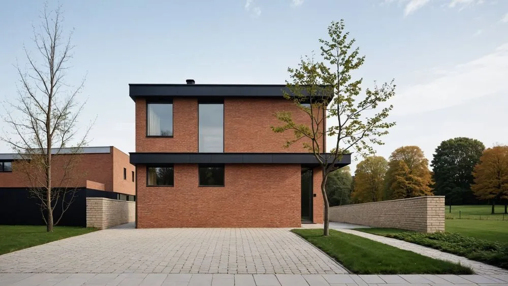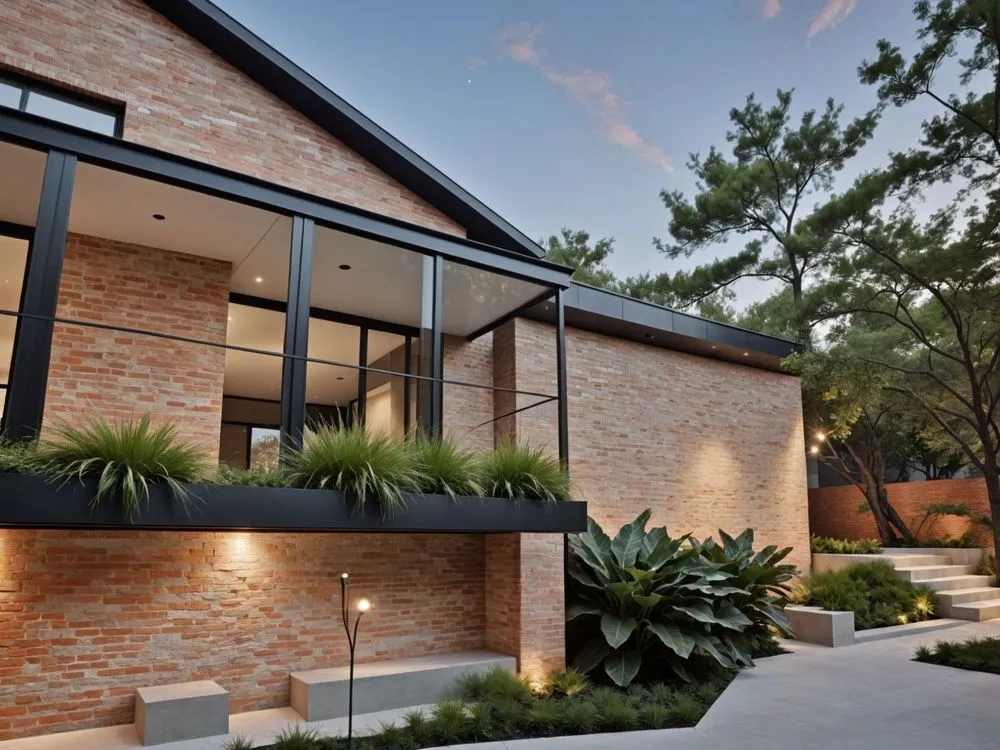 a modern home made of red bricks