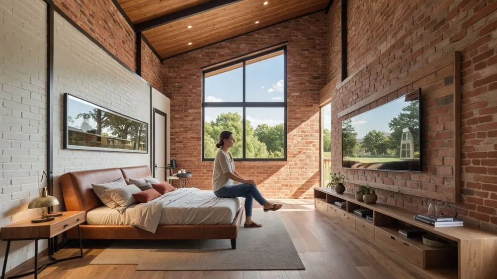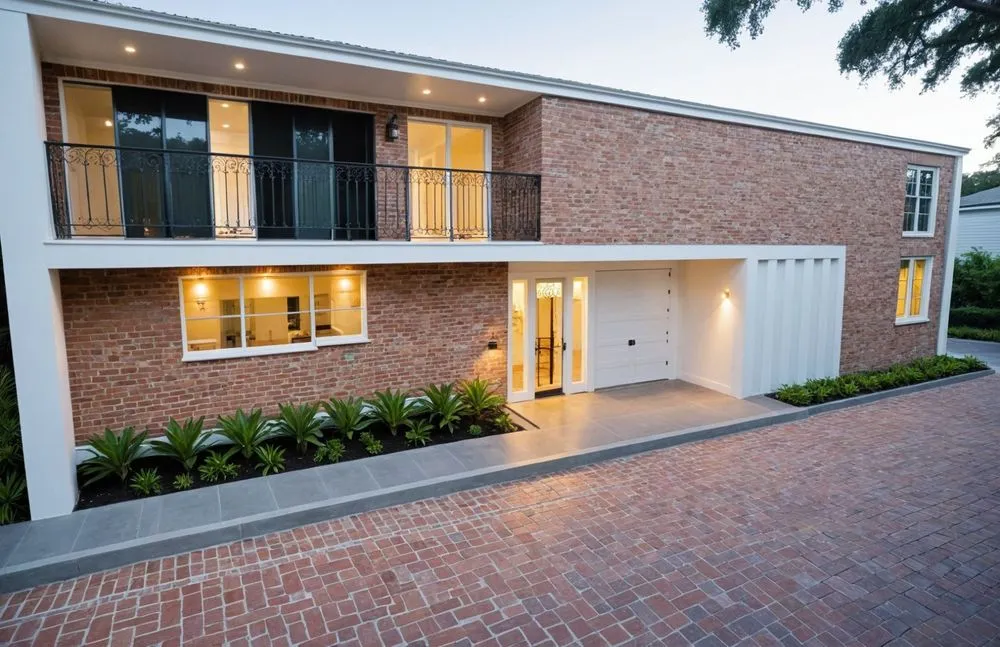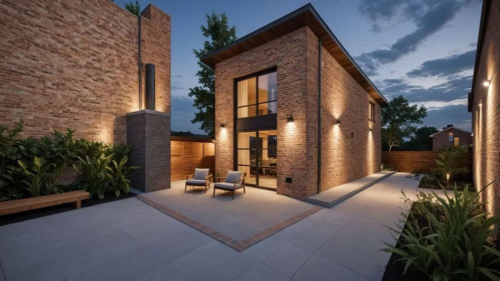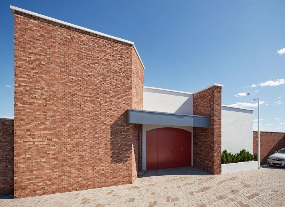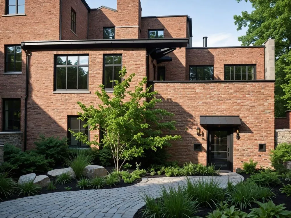 a modern home made of red bricks