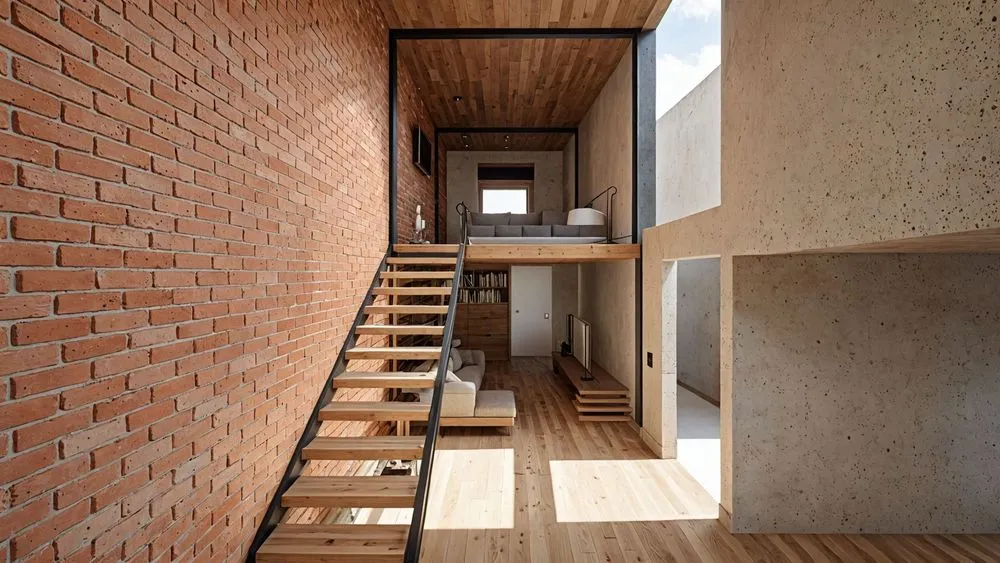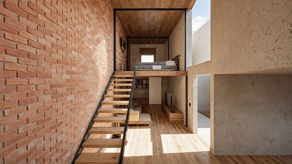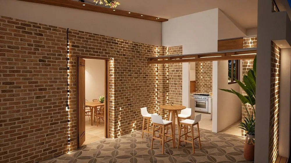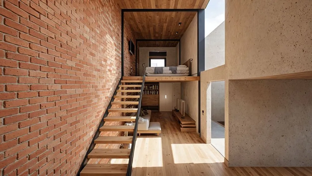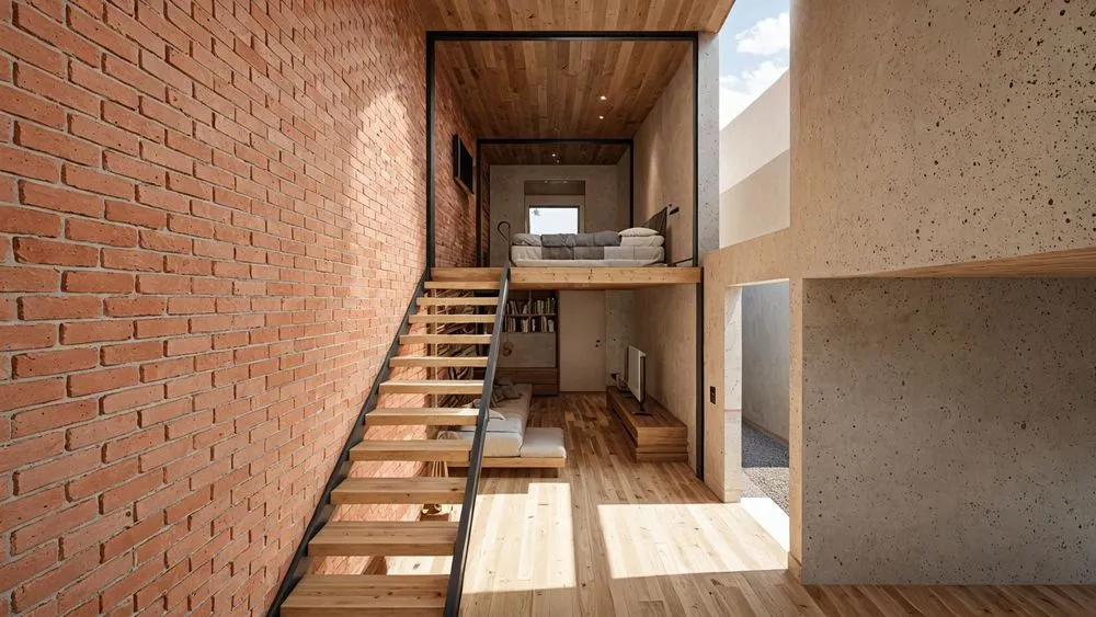 the interior of this small house is made up of bricks