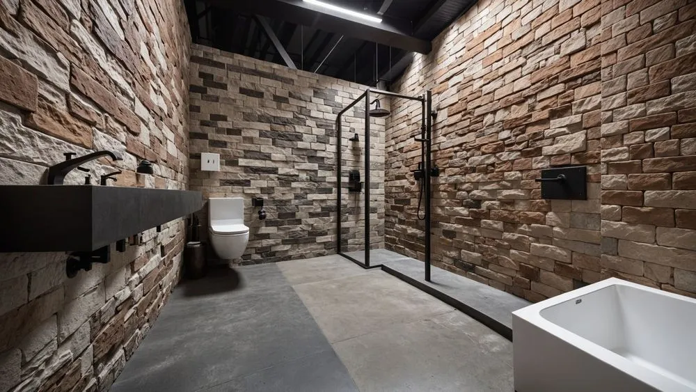 the bathroom has been made out of natural rock