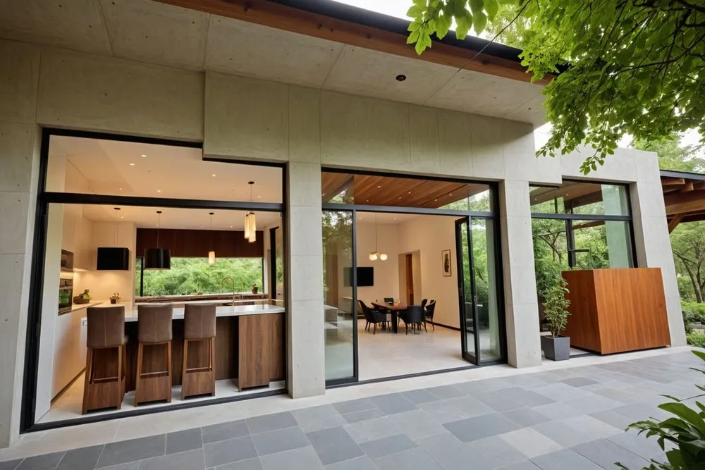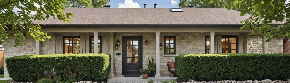 a small home with many windows in the front