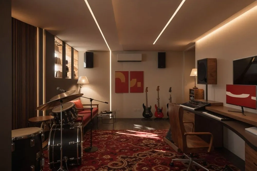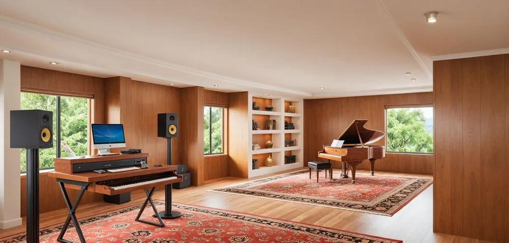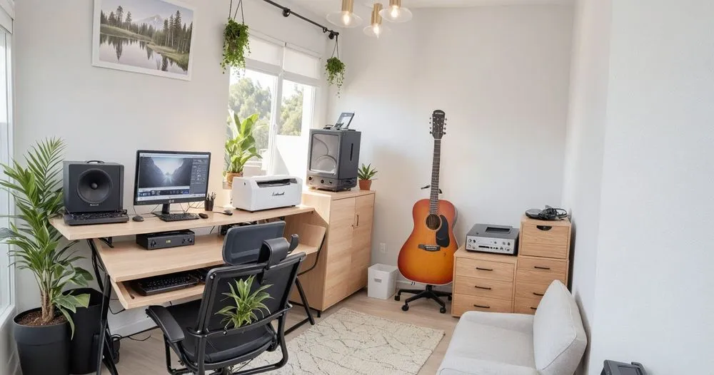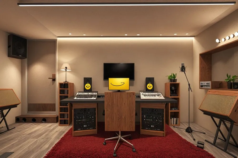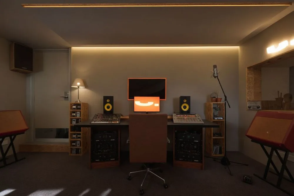 there is a studio room with some electronics