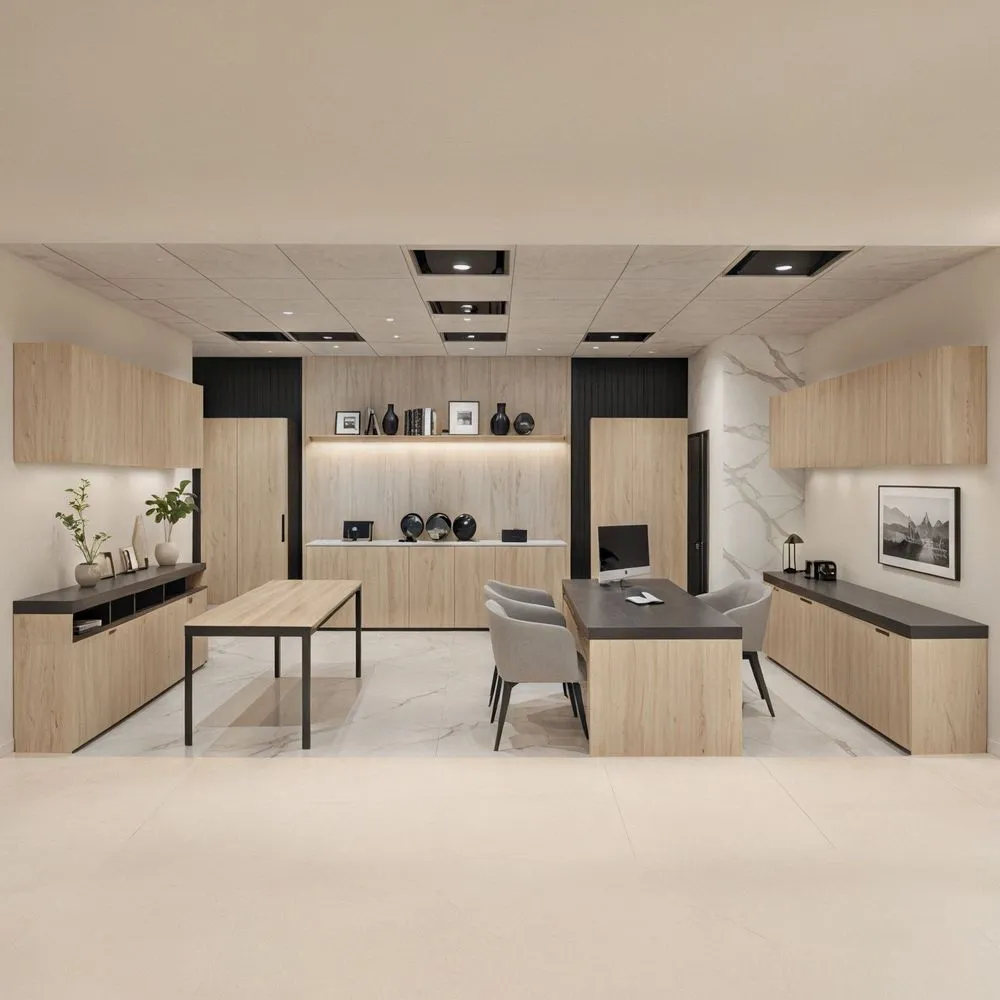 a very large office with a desk and chairs Danesco - Martini Glass - 8.5 oz - Stainless Steel WÜSTHOF Ikon Knife Block Set – 10-pcs. Service Ideas TPCE16BL Black Ceramic English Teapot 16 oz. American Metalcraft (MCW13) 1/3 Stainless Steel Measuring Cup, Silver Get RST-1815-1-BK Plastic Room Service Tray - Black Libertyware MEA04PC Measuring Cups Thunder Group BACS002 Chopsticks Forbes Industries 4886-W Luxe Series Back Bar Libertyware WSP18HD Spoon, Wooden Thunder Group Slam103 Bouillon Spoon, Heavy, 18/0 Stainless Steel Vollrath - 40719 - Cayenne 18" Manual Gas Flat Top Griddle Get Enterprises - SU-2-DW - Diamond White 5 1/2 in Saucer Blue Air BBB69-3BG-HC | 69" Wide 2 Door Black Vinyl Stainless Steal Back Bar