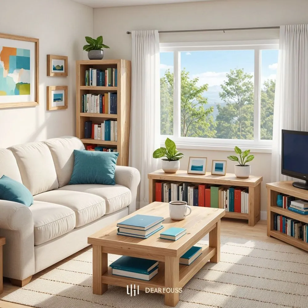 a room with white and black marble walls, gray furniture, and a black marble staircase