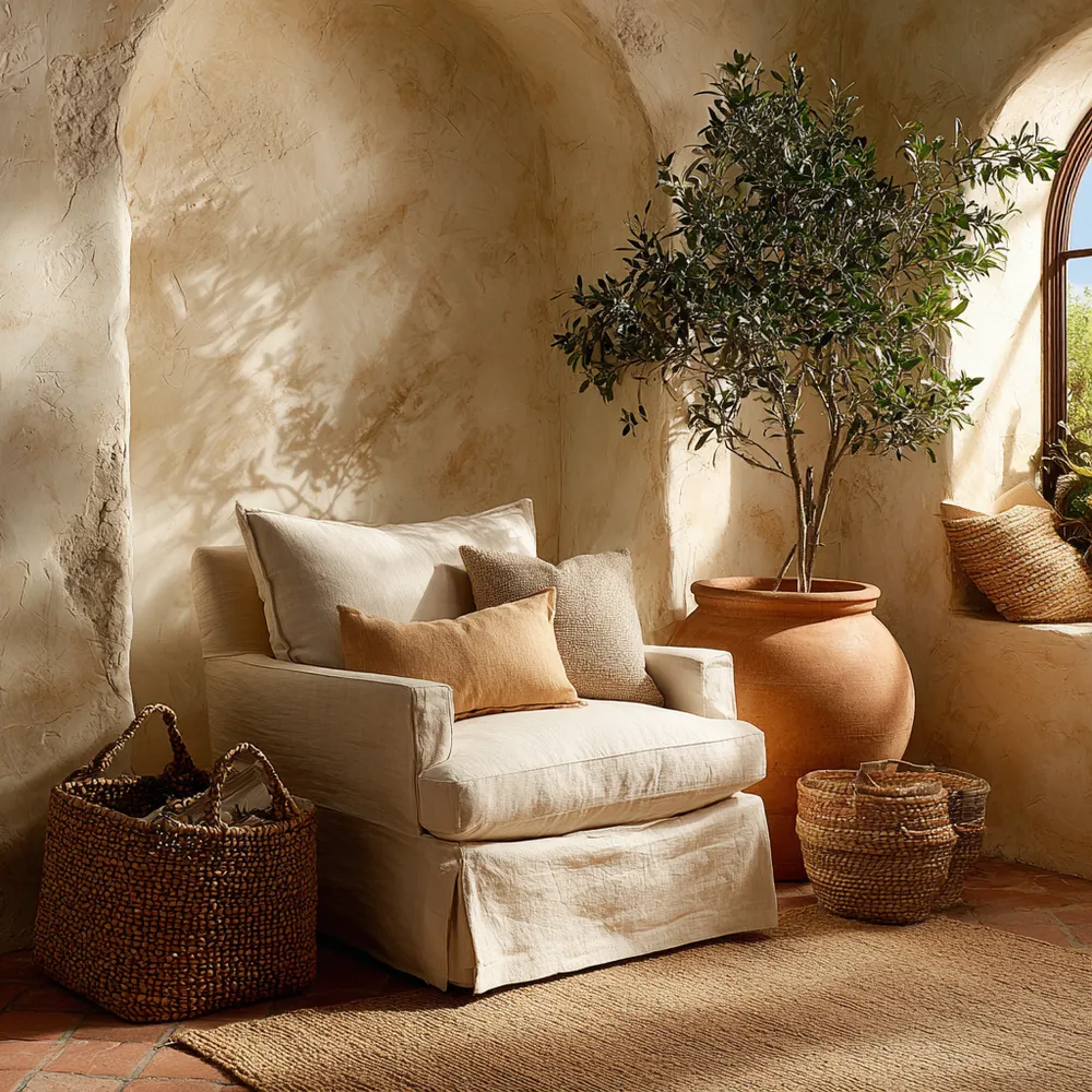 Sunset Serenity: Warm Ochres & Soft Lavenders for a Relaxing Living Room 🌅