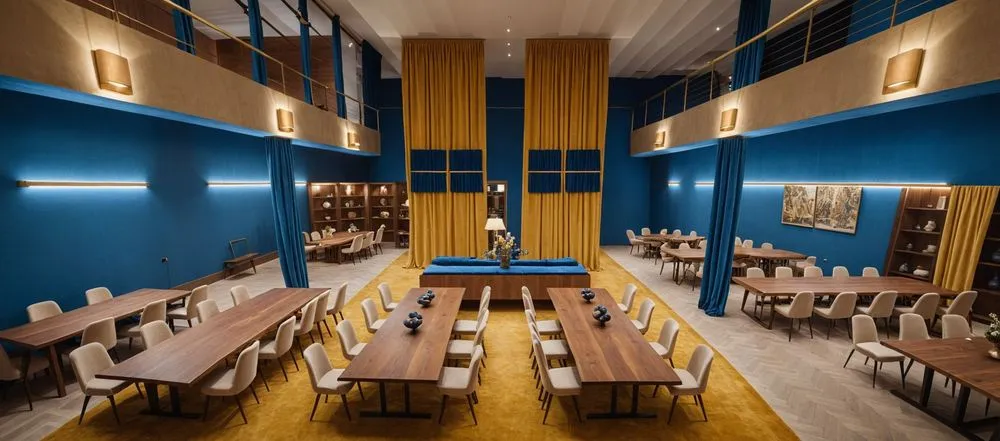 this is a dining area in an art deco building
