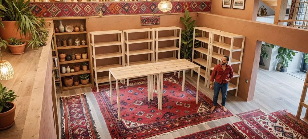 a living room filled with furniture and a wooden table