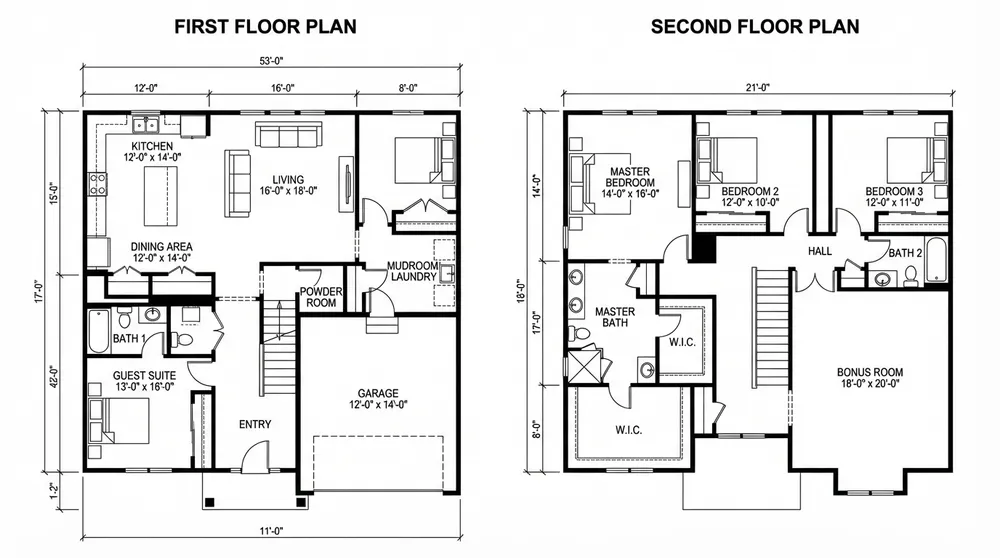 two story house on land with garage and front elevation