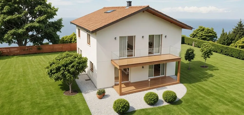 a house on a hillside overlooking mountains and valleys