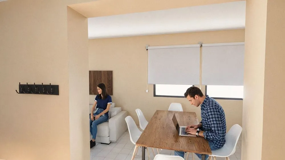 a simple and tidy bedroom has some window shades