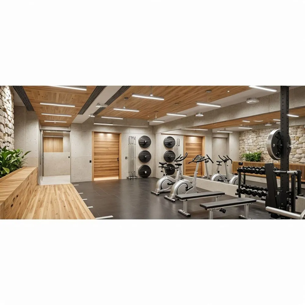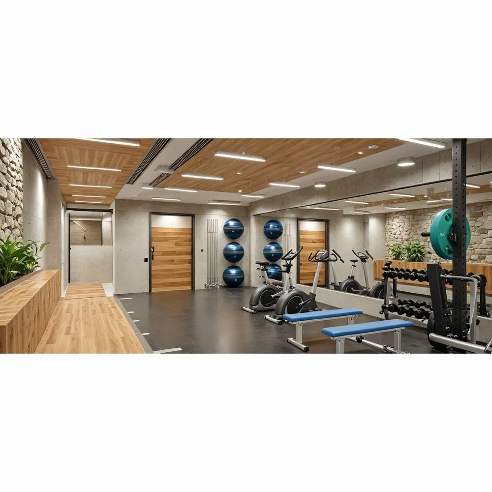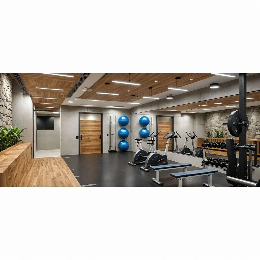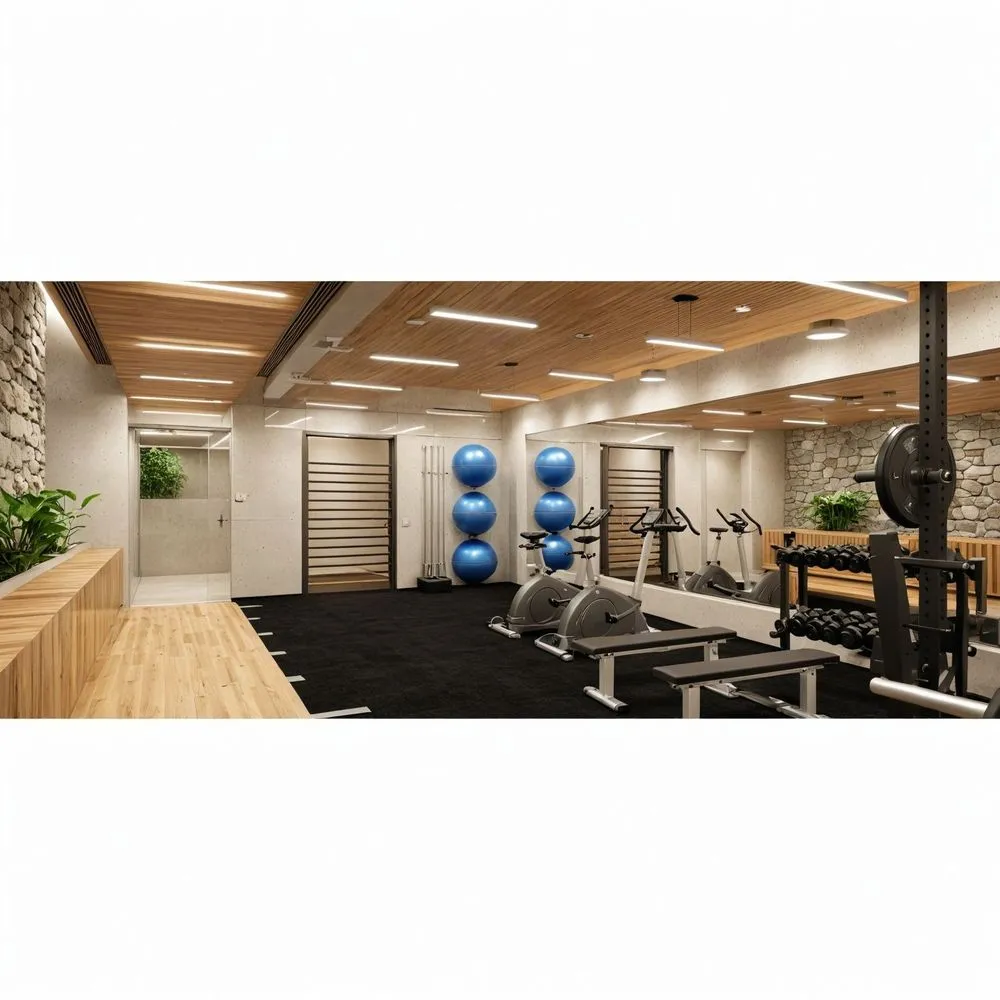 a gym filled with gym equipment and balls