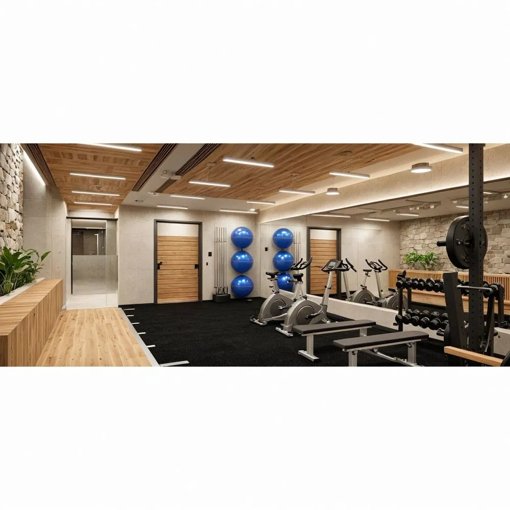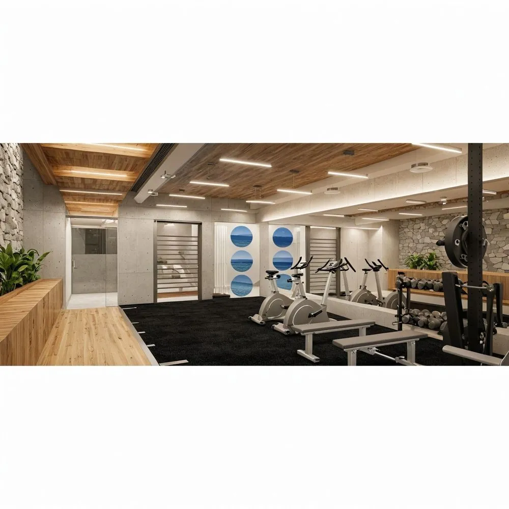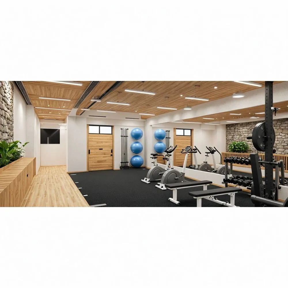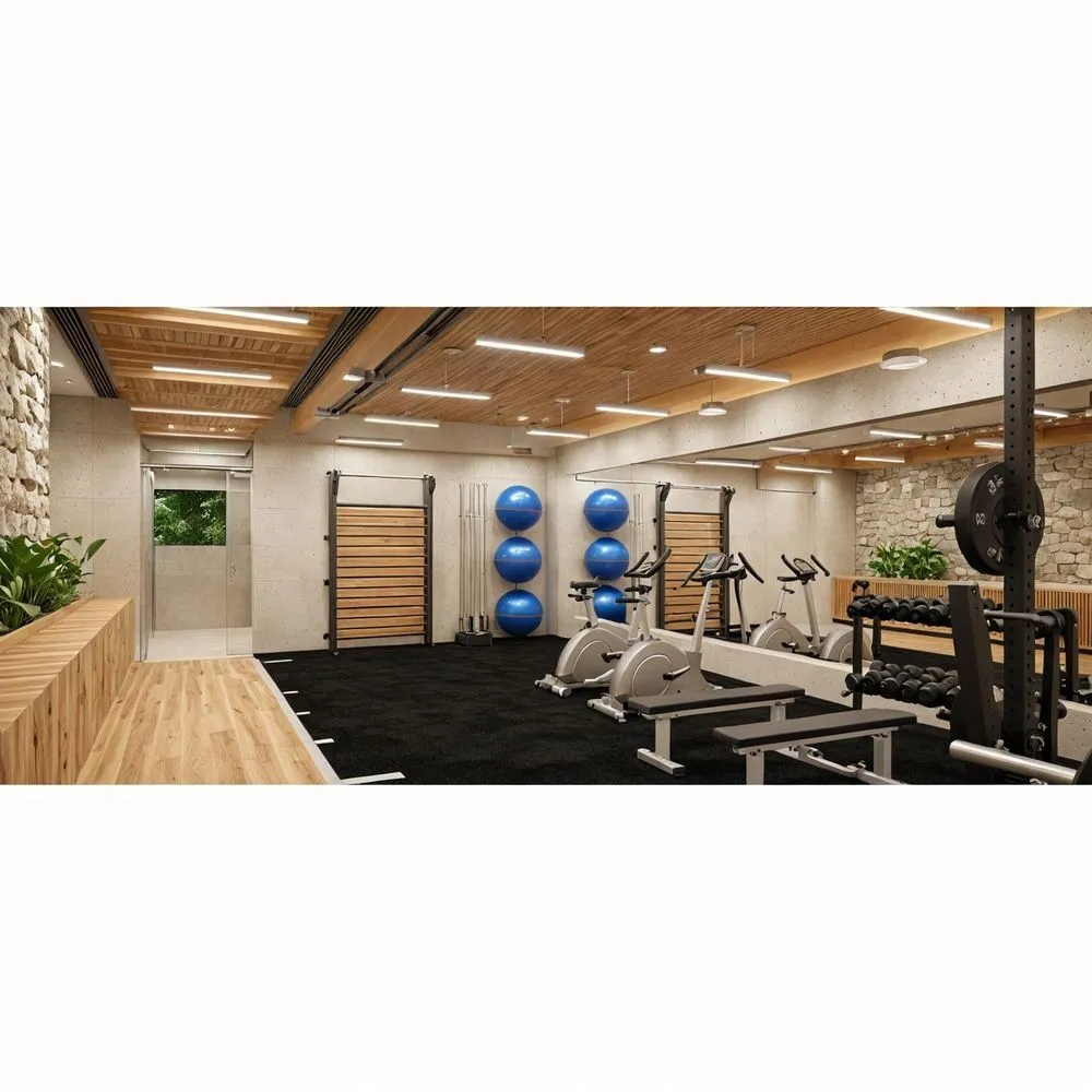 a modern gym is displayed in the large open space