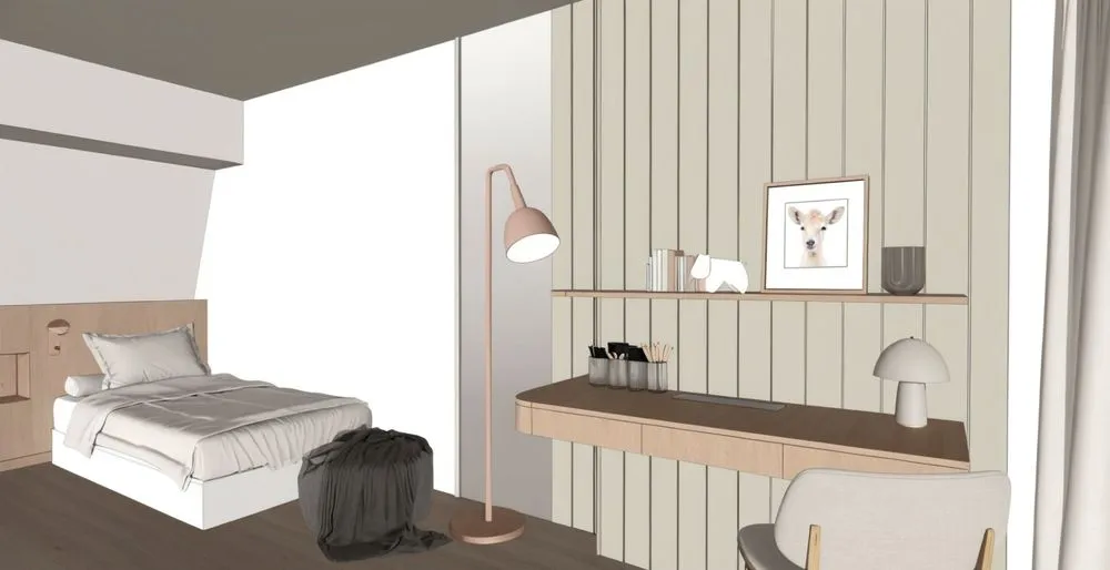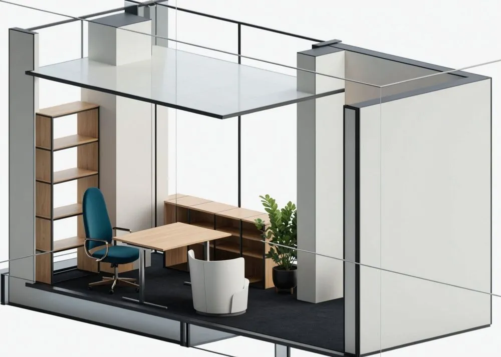 this is a graphic representation of a two person room cubicle