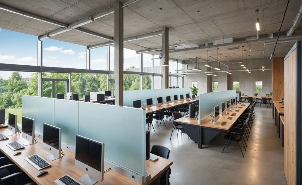 a modern open plan office with computers