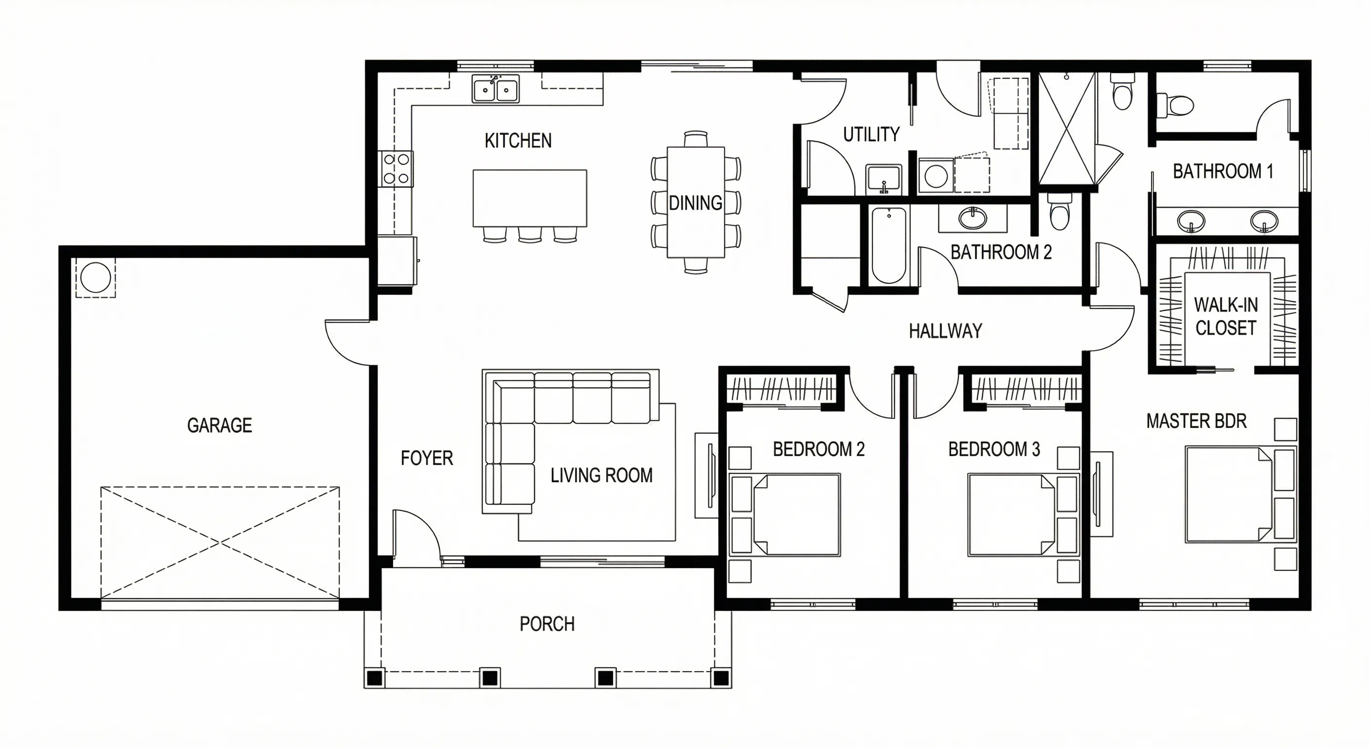 Try different bedroom/bathroom counts, switch open vs. closed kitchen, and add a walk-in closet to see how the layout could work for everyday living.