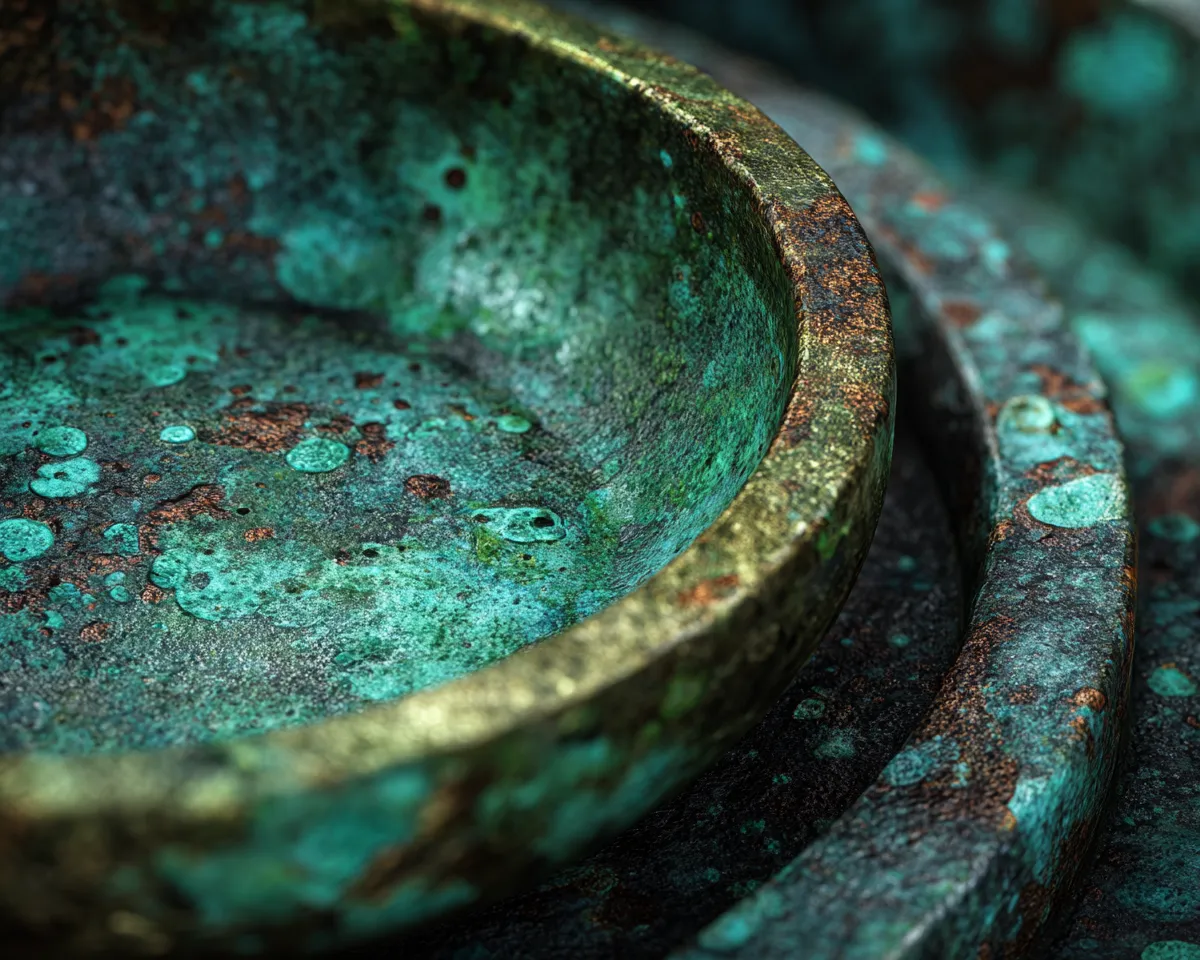 Explore the captivating beauty of oxidized metals in décor. Artisan-crafted pieces like aged brass trays, verdigris-finished sculptures, or subtly tarnished metal frames offer a unique character and history. This 'patina' isn't a flaw, but a sign of age and the material's journey, celebrated in handmade items. They bring a vintage charm and a grounded, artistic feel to your space, showcasing the beauty of natural aging and the enduring human touch in their creation. 💫