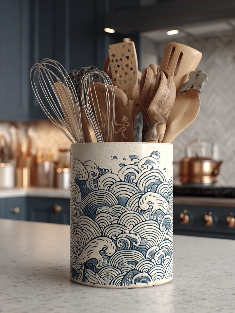 Coastal Kitchen Utensil Holder: Organize with Seaside Charm! 🐚🥄