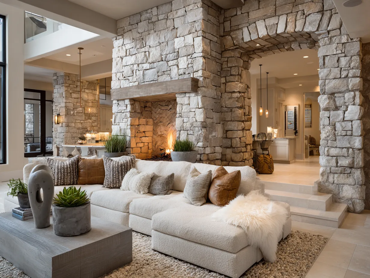Embracing Texture: Your Stone-Accented Living Space 🪨✨
