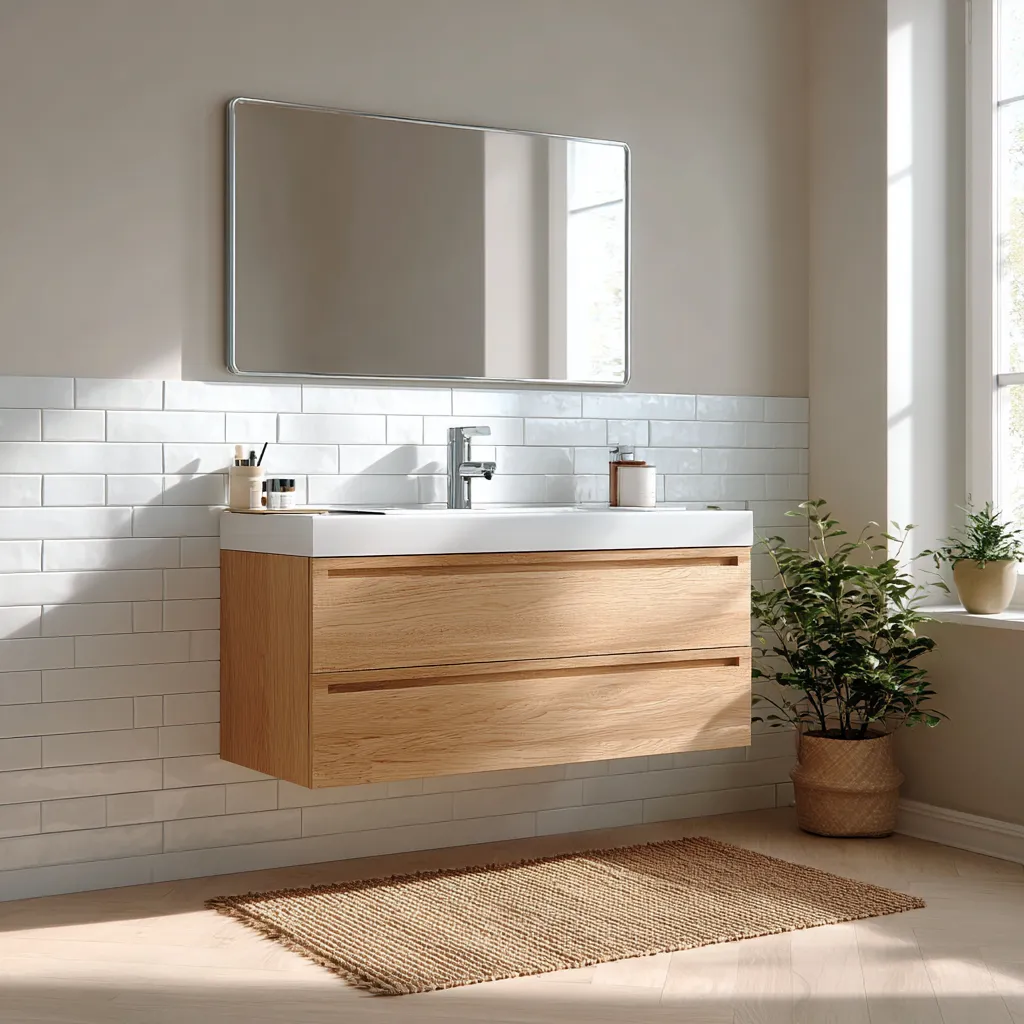 * **Minimalist Fixtures:** Sleek chrome or brushed nickel faucets and hardware.