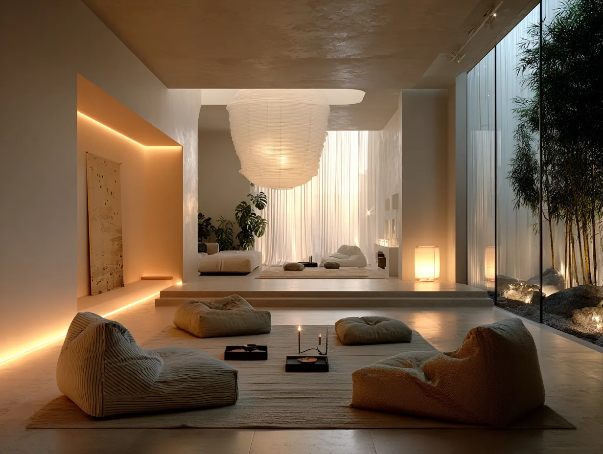 * **Ambient Softness:** Use diffused lighting from paper lanterns or fabric-shaded lamps.