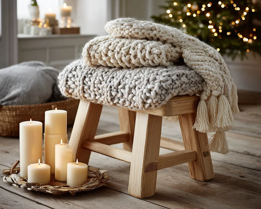 ✨ Textured linen or wool throws draped artfully