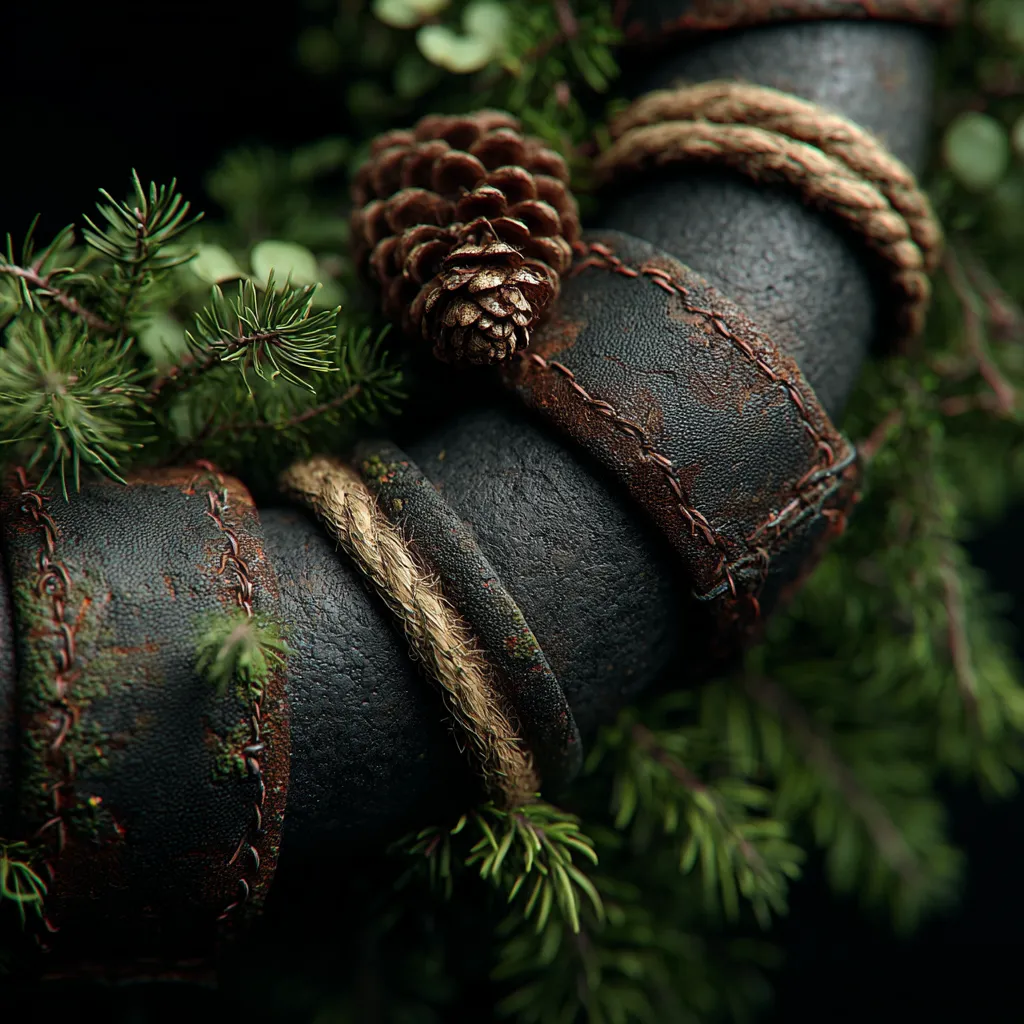 Industrial Christmas Wreath: Metal, Leather & Natural Greens 🌿